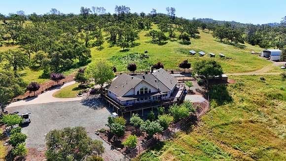 This turn-key property includes two contiguous parcels with easy access along Lanford Pacheco Road. A scenic drive into the ranch leads you past tree-covered rolling hills, valleys and stunning vistas, to the ranch center where the homes, outbuildings and other structures are located. Surrounding the ranch center are gently sloped hills, flats and ridges of fertile grazing land with numerous springs, four ponds, native oaks and other deciduous trees, conifers, grasses and seasonal wildflowers. The water and fertile soil along with a wide variety of tree cover provides a rich habitat livestock, deer, quail, turkey, dove and other wildlife. Spectacular views of the Gold County, Sierras and the Central Valley stretching to Mt. Diablo can be taken in from around the property. Well-maintained roads provide great access to and throughout the ranch. An irrigated garden, orchard, flowering accent trees and landscaping surround the main home. Numerous springs are sprinkled throughout the ranch along with multiple livestock water troughs. Clear night skies free from ambient light with gentle breezes offers a quiet respite from the bustle of urban life.