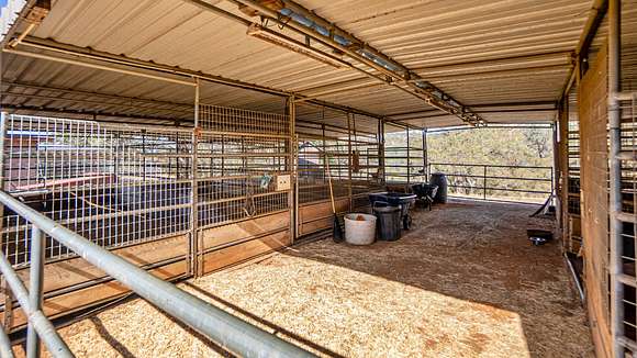 UPPER OUTBUILDINGS: 2,200-sq. ft. six-stall horse-livestock barn; 1,300-sq. ft. hay barn; 2,800-sq. ft. horse-livestock barn flanked by 5,500-sq. ft. of attached fence corral/pens; 80-sq. ft. enclosed wood storage building; extensive corrals and pens.