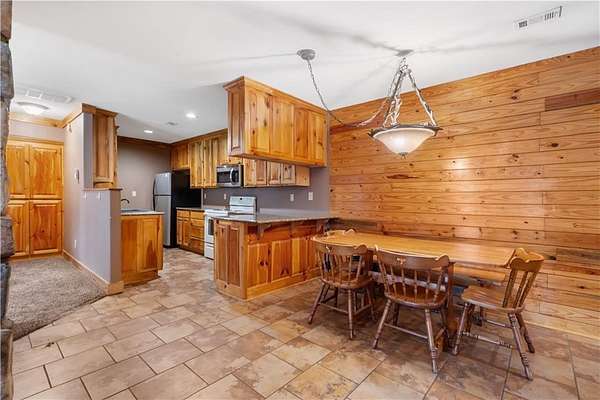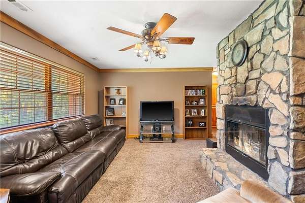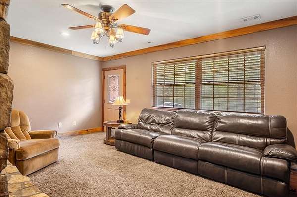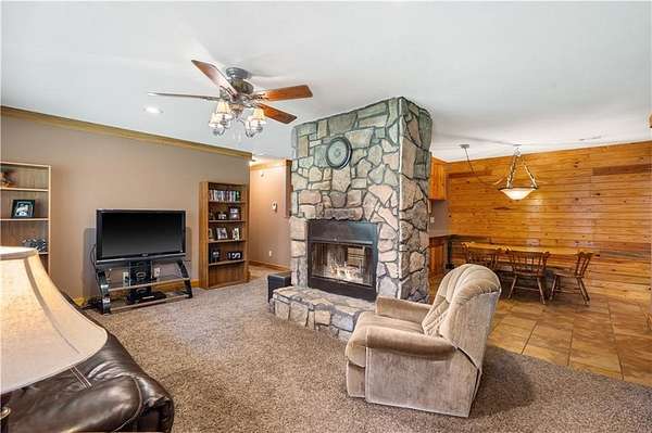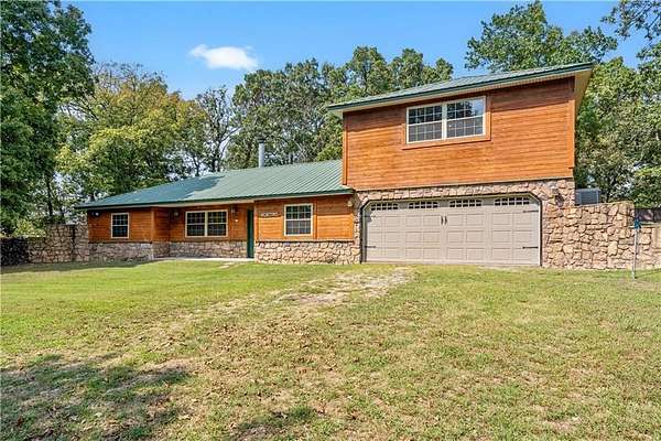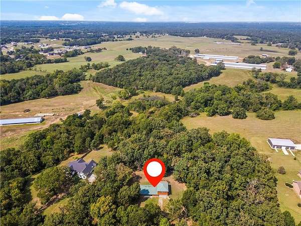 Escape to a private retreat just outside of Bentonville!This charming home is nestled on 5 acres of pasture and mature woods, offering the ideal balance of privacy and convenience.Step inside and you are welcomed by the warmth of a stunning two-sided stone fireplace, creating a cozy connection between the living and dining areas. The kitchen features knotty pine cabinetry, stainless steel appliances, and granite counters--perfect for everything from casual family dinners to entertaining friends.The spacious primary suite, privately located upstairs, offers a peaceful haven with its own deck overlooking serene country views. Two additional bedrooms provide comfort and flexibility for guests, family, or a home office. Outside, the land invites endless possibilities--from gardening to hobby farming to simply enjoying the countryside. If you're seeking the peace of country living without giving up quick access to town, this property is the perfect fit. Bonus: The house is available next door for additional opportunities!