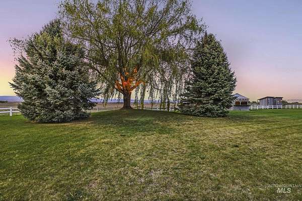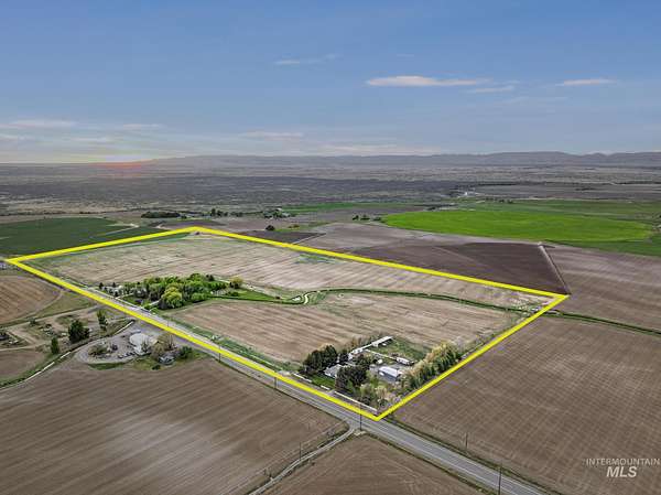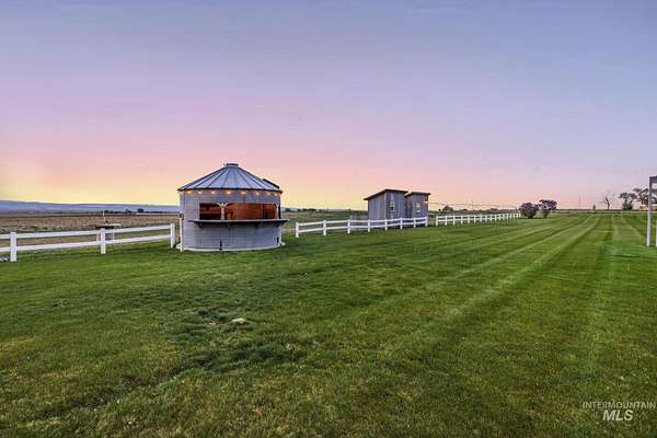 Exceptional 80-acre estate featuring a luxurious 6,282 sq ft home w/4 bedrooms & 5.5 bathrooms. Each bedroom includes a private en-suite, w/two suites on the main level and two on the second. The gourmet kitchen boasts top-of-the-line appliances and abundant storage throughout. The expansive great room boasts soaring 12-foot ceilings, creating a warm, open atmosphere filled w/natural light. Additional highlights include central vac, a wet bar, 1,036 sq ft attached rec room(Not included in 6282 Sq Ft), other must see features. The backyard is designed for entertaining w/a lit dance floor, bar, & two silo bathrooms. A 40' x 60' shop/RV storage building w/14' overhead door and a built-in dog kennel. The property also includes a second residence/rental; 2,804sq ft 4 Bed 2 bath home w/a 2-car garage, 59'x39' shop, and multiple outbuildings. 66+/- acres are farmable & irrigated via three pivots. A rare opportunity to own a fully equipped estate ideal for entertaining, multigenerational living, or income potential.