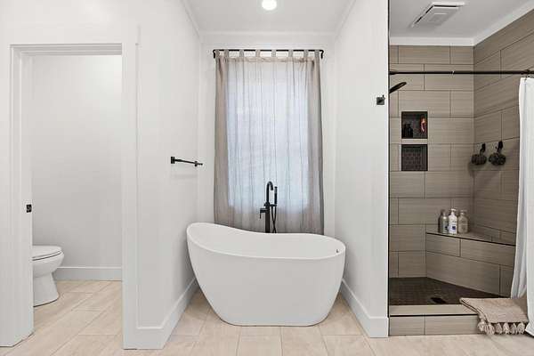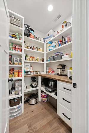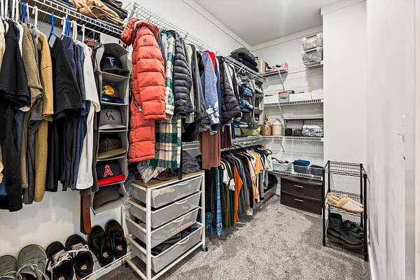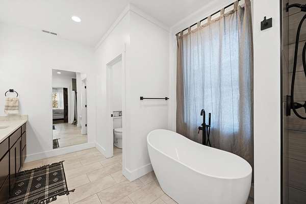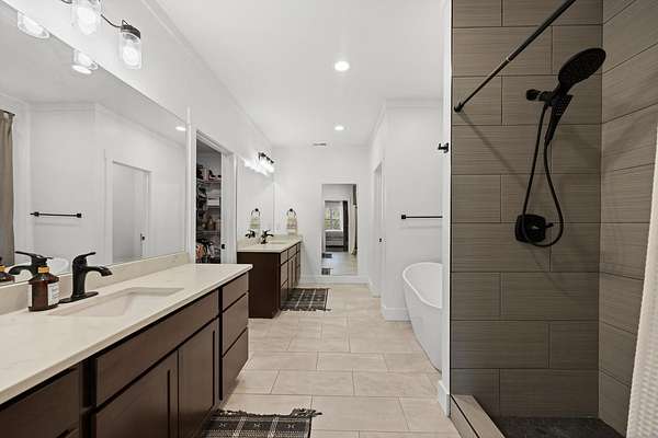- Built-In Features, Ceiling Fan(s), Crown Molding, Double Vanity, Eat-In Kitchen, High Ceilings, Kitchen Island, Open Floorplan, Pantry, Primary Downstairs, Soaking Tub, Stone Counters, Walk-In Closet(s)