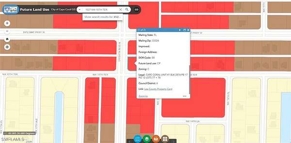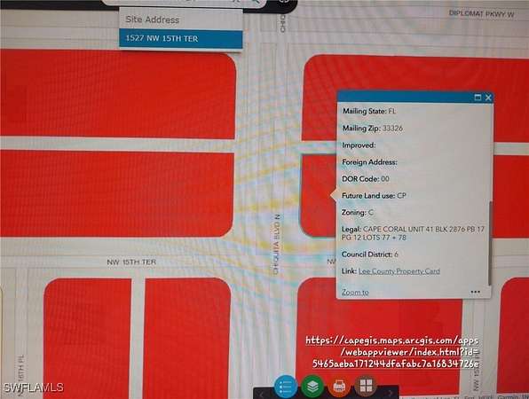 Situated On the NE corner of Chiquita and 15th Ter., right behind Diplomat Parkway is this piece of land being offered for sale. The Zoning and future land use for this property is commercial / professional. This area is poised to become a hub of activity and growth, making it an appealing opportunity for the visionary who seeks great future value and returns. This property's land use allows for a wide range of businesses, from professional offices and services to retail establishments. This vacant lot is perfectly positioned for a dynamic future in a world of commerce and professionalism, offering a wealth of opportunities for savvy investors and entrepreneurs.