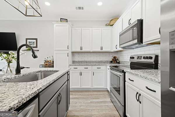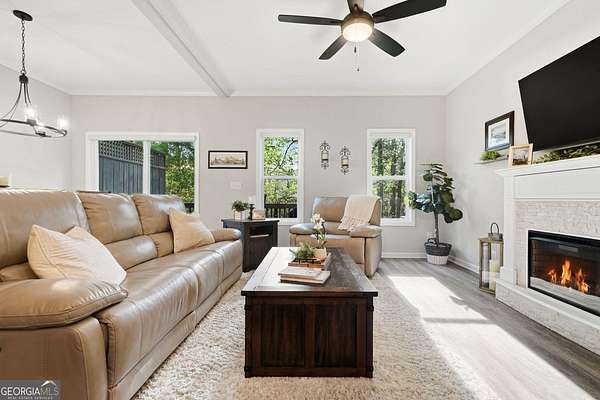 Effortless Style Meets Easy Living Near Lake Lanier in the Heart of Gainesville Welcome to this beautifully maintained, move-in ready townhouse tucked inside a sought-after gated community just minutes from Lake Lanier. Designed for both comfort and connection, the open concept main level is filled with natural light and flows seamlessly from the living area to the dining space and kitchen, making it perfect for everyday living or hosting with ease. Step outside to the oversized deck spanning the width of the home, where you will feel perched among the trees in a private and peaceful setting that is ideal for morning coffee or evening gatherings. Upstairs, spacious bedrooms offer a true retreat, including a well-appointed primary suite featuring custom closet space and room to unwind. The finished terrace level adds incredible versatility and is perfect for a media room, home office, or guest space, with direct access to a wooded and private backyard. Enjoy low maintenance living without sacrificing space or lifestyle, all while being close to Lake Lanier's boating, recreation, and scenic beauty. You are also just minutes from shopping, dining, Lanier Point Parks, and major roadways, making your daily routine simple and your weekends even better.