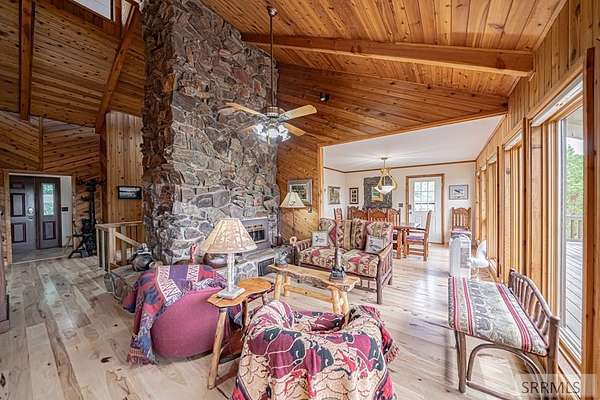 Tucked away on 13+ private acres of lodgepole pines and aspens, this one-of-a-kind retreat offers a rare blend of seclusion, scenery, and history, overlooking the Henry's Fork with distant Teton views-capturing everything people come to East Idaho for: privacy, wildlife, and world-class outdoor recreation. Opportunities like this are limited, as acreage, views, and proximity to renowned fly fishing waters, Mesa Falls, and Yellowstone access points are becoming harder to find, making this an ideal fit for a personal escape, legacy property, or potential short-term rental. This fully furnished 3 bed, 2.5 bath home blends rustic character with modern comfort, featuring custom-built furnishings, a floor-to-ceiling stone fireplace, vaulted ceilings, and expansive windows that bring the outdoors in, along with flexible living spaces including loft and bunk areas, a walkout basement with a second fireplace, wet bar, mudroom, and additional recreation space. A wraparound deck with panoramic views completes the experience. With no HOA, room to expand, and unmatched access to the Henry's Fork and surrounding recreation, this is your opportunity to secure a true Idaho retreat-reach out for full details or to schedule a private showing.