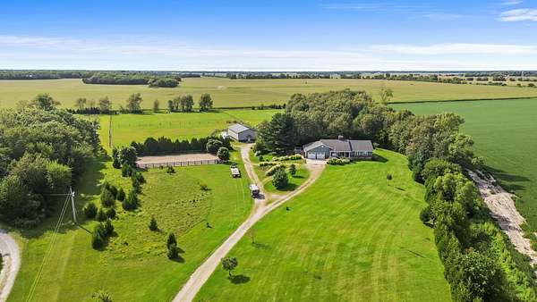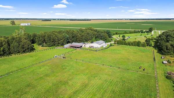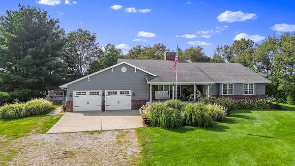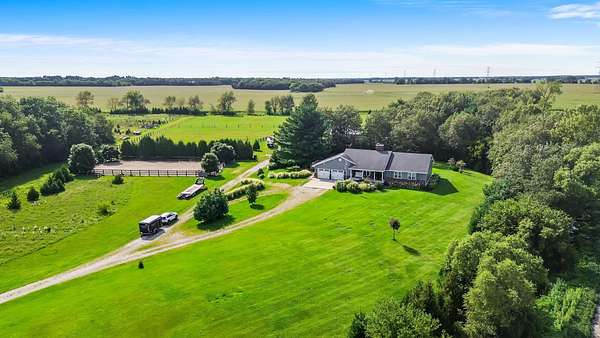 Attention all horse enthusiasts! Here is the one you've been looking for! This 2200+ sqft ranch home on a walkout basement is situated on top of a high ridge overlooking this impressive 18.56 acre equestrian estate! Offered by the original owners, you'll appreciate all of the thought that went into every feature of this working farm. A covered front porch welcomes you home; upon entering, you'll love the floor to ceiling brick fireplace. This dual sided fireplace is enjoyable from both the living and dining rooms. The primary suite is huge and boasts hardwood flooring, a walk in closet and a bathroom with a vintage freestanding clawfoot tub. Bedrooms 2 & 3 are spacious as well & share a full bath. The open concept kitchen is home to tons of hickory cabinets for that farmhouse feel! A generously sized mud/laundry room with a 3/4 bath is a great place to clean up after the chores are done. Need more space? The 2200 sqft walkout basement is a clean slate & offers endless possibilities! There are some walls framed up with some knotty pine siding installed & a 3/4 bath is roughed in. An under porch concrete shelter room & an under chimney built in gun safe are great bonuses. For outdoor entertaining there is over 650 sqft of decking! The 24 x 50 horse barn offers 4 stalls with an overhang for outside shelter. An outdoor sand lined riding area, the wash rack, & the fenced in pastures truly make this a turn key horse property. There's more...for the car lovers. Check out the 36 x 64 FBI pole barn! This building offers something for everyone. The finished half has heated floors w/ a new boiler, A/C, & a 1/2 bath. The cold storage side has a 14' door for boat/RV storage, a car lift & a hay loft! The years and the funds it takes to set a property like this up is mind blowing...the sellers have done it all for you! Grab your horses and your toys and move in!