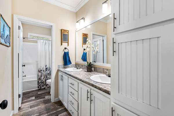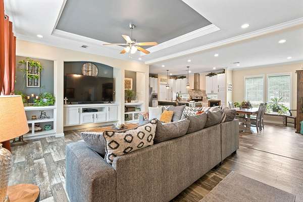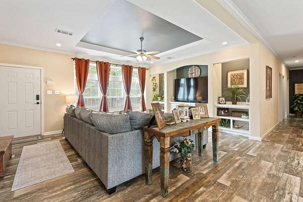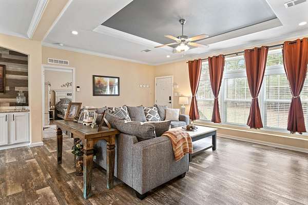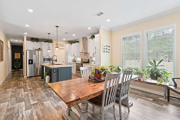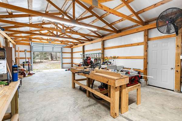 Set on 3.893 acres in Elysian Fields ISD, this 2018 modular home offers a thoughtful balance of comfort, space, and rural ease. Spanning approximately 2,100 square feet, the 4 bedroom, 2 bath layout is anchored by a well executed split floor plan that creates natural separation between the primary retreat and guest spaces. The primary suite feels intentionally tucked away and features a soaking tub, separate shower, dual vanities, and a generously sized walk in closet. Three additional bedrooms sit opposite the suite, each with ample walk in closets and flexibility for guests, office space, or growing households. The heart of the home is the open concept living area, where custom built ins frame the main gathering space, offering both architectural interest and functional storage. In the dining area, additional built in cabinetry adds warmth and intention, creating a seamless extension of the kitchen while providing practical serving and display space. The kitchen itself is clean and inviting, complete with stainless steel appliances, abundant cabinetry, and a layout designed for everyday living. A whole home water filtration system adds another layer of ease and practicality. Outdoors, the property continues to deliver. A detached two car carport with attached storage offers covered convenience, while the 20x40 workshop provides substantial room for projects, equipment, or hobby space. Positioned in a rural setting with easy access to both Marshall and Shreveport, this property offers space to breathe without sacrificing connection. Comfortable. Capable. Intentionally designed for life beyond the city limits.