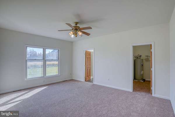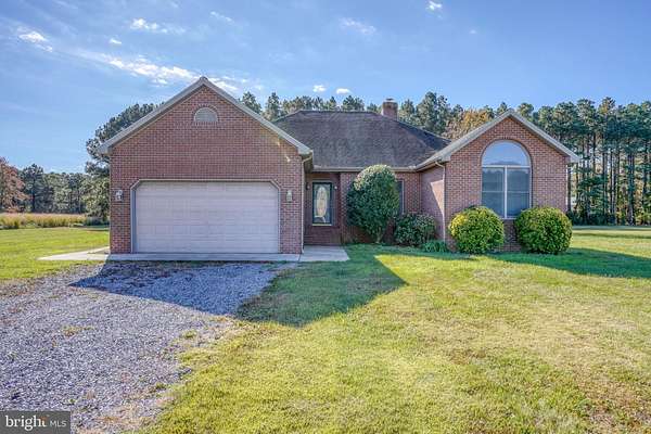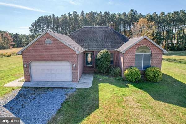 Looking for a serene location? Peace and quiet can be found here in Woolford, in the Deep Water neighborhood. Conveniently located halfway between Cambridge and Taylors Island, Woolford is a water oriented town with close proximity to Blackwater National Wildlife Refuge. This custom-built all brick single-story home is situated on a flat and grassy 2.22 acre lot that backs to woods. The home offers an open, modern floor plan. Coming home the brick front porch leads to the front door. Inside the foyer opens into the center of the home. Note 9' ceilings and wood doors throughout. Inviting entry to the great room from the foyer, with a spectacular view out the double set of sliding glass doors showing the majestic trees in the rear wooded backdrop. The great room has a brick fireplace that has only been used with a wood pellet stove insert. The stove can reduce the cost of your electric bills with an efficient heat source while still providing aesthetic glow of a fireplace without the mess and hassle. Off the great room there is a spacious kitchen with bay window in the dining area and abundance of counter and cabinet space including a pantry cabinet and counter overhang for stools. In total there are 4 bedrooms, 2.5 bathrooms including the primary bedroom ensuite. The primary suite is located on the opposite side of the house from the other 3 bedrooms for privacy. It has a large walk-in closet, generous bathroom with dual sinks, a whirlpool bathtub, and a separate one piece shower. The other bedrooms all have ceiling fans and the front corner bedroom offers a high vaulted ceiling with a fan and a huge front arched window. Throughout the home there are many windows providing natural light and warmth to the home. The closets are all spacious. Currently the owner has set up a bedroom for use as a home office with vinyl floor and shelved closet. Convenient 1st floor laundry/mud room has cabinets and utility sink. From there you can enter the large, attached 2-car garage with a workbench, and a garage door opener with 2 new remote controls. Some of the many 2025 updates of the home include: Fresh paint & new carpet throughout, newly refinished wood floors in the foyer, kitchen, and dining area. New 50 gal. water heater w/ booster (installed Mar 2025), Dishwasher (installed 2024), HVAC system (installed 2024). In addition, for your convenience, the home comes with a central vac system with attachments! Price reduced for quick sale. Don't miss this opportunity! Call your agent today for your own private viewing.
