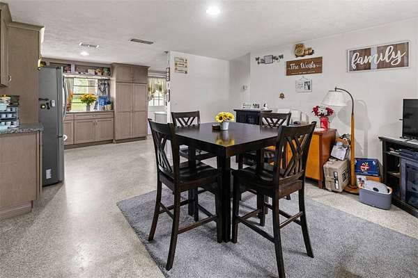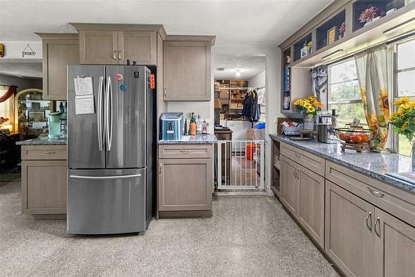 $10K PRICE DROP on this rare Dual-Residence Opportunity in the Heart of Jonesville on 3.45 acres and NO HOA! The sellers are open to owner financing a portion of the purchase price, with terms to be negotiated OR contribute toward buyer closing costs. They are willing to explore other creative solutions to help make this home yours. If you're dreaming of wide-open space, timeless charm, and endless potential -- this is the one! Nestled on beautiful land shaded by majestic live oak trees and adorned by mature rosebushes, this concrete block home with classic terrazzo floors and a durable metal roof offers vintage appeal with modern flexibility. The property features two septic tanks, two wells, and two separate utility connections, making it an ideal setup for a dual-residence, multigenerational living, or future expansion. A recently updated kitchen with granite countertops and custom cabinetry helps to make life a little easier, and the newer stainless appliances are there for a polished look. The wood-burning fireplace adds depth and character, and it feels like home as soon as you pull into the drive.