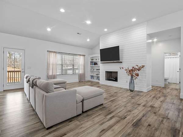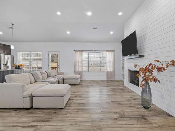 Come see this beautiful updated home situated on 3.20 acres minutes from I85 with no restrictions or HOA. This home has 1933 sq feet, 3BR, 2BA with spacious open floor plan, split bedroom layout for privacy and a 50x40 detached garage/shop! From the front door you are greeted to a dining room which opens to the large great room with bookshelves and shiplap surround fireplace. The kitchen has an oversized island, stainless steel appliances, new stainless steel range hood, and a pantry. Primary bedroom is located on main level with lots of windows for natural light, large primary bathroom with double vanity, soaker tub with jets, ceramic flooring, and HUGE walk in closet. Two bedrooms and a bath along with a linen closet are privately located on the other end of the home. The walk in laundry has built in cabinets with granite counter, great for storage, along with tile flooring. The standout feature of this home is the 50x40 detached garage/shop complete with two mini splits, three oversized garage doors, coated concreate flooring, separate man door, electric, and concrete surround. There is also a rear lean to for additional covered storage and two 220 electrical hookups for an RV. If you are looking for an updated home (fresh paint, new flooring, stainless steel range hood) and a dream workshop all with no restrictions or HOA, this property checks all the boxes.