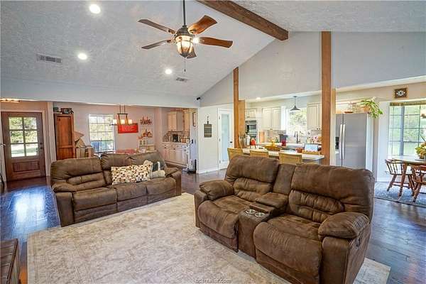 Enjoy comfortable country living on 3.75 acres between College Station and Huntsville along Highway 30. This 3-bedroom, 2-bath, 1,747 sqft home features an open layout with a cathedral ceiling, quartz countertops, designer cabinets, wood flooring, a spacious pantry, and a whole-home generator for added peace of mind.