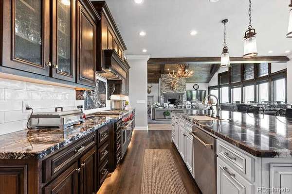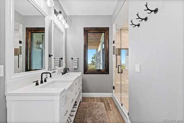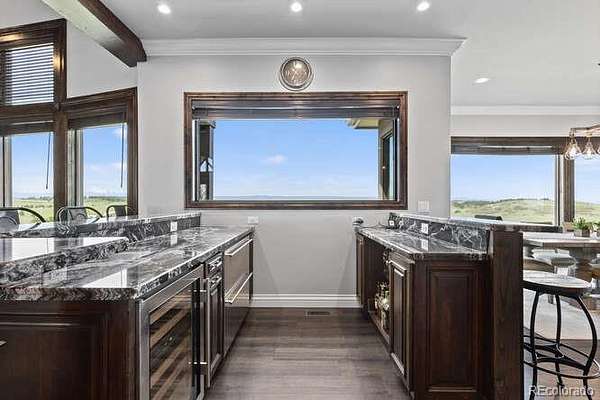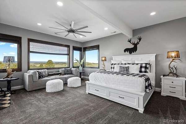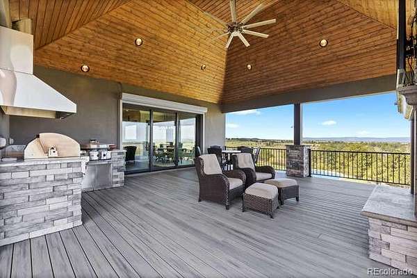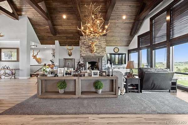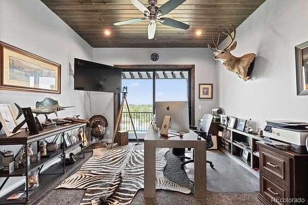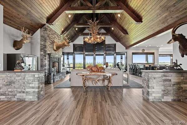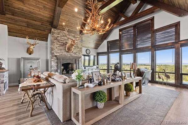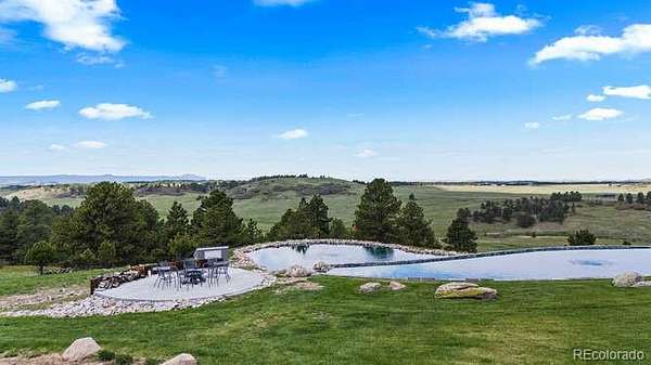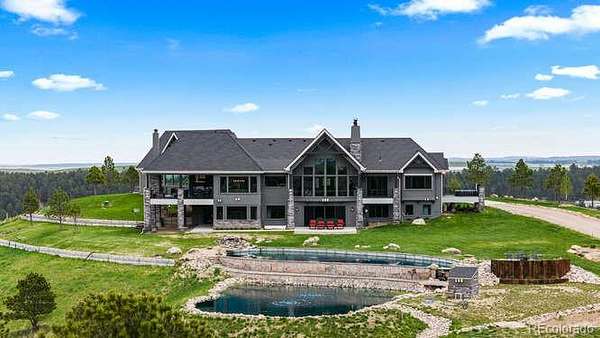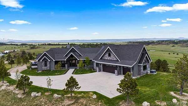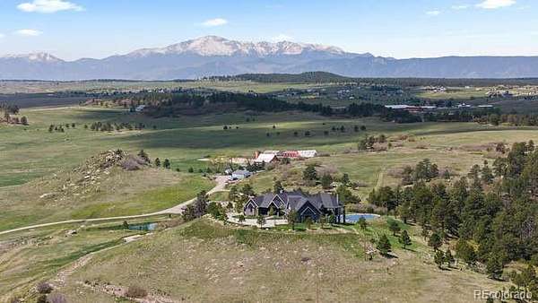 Diamond K Ranch is an exceptional luxury Mountain Ranch in Colorado offering breathtaking, unobstructed mountain views from Pikes Peak to Longs Peak. This ultimate outdoor paradise is nestled in thousand of acres of protected space making it feel like you own so much more acreage. The heart of this retreat is the spectacular custom-built home atop the hill. Luxe finishes include soaring ceilings, 8' doors & expansive windows that frame the unparalleled 360 views. The gorgeous great room includes wall to wall views with massive fireplace, vaulted tongue and groove ceiling & antler chandelier. The high-end kitchen features Wolf & Sub-Zero appliances, granite counters, custom cabinetry, bar area, center island, & large pantry. Spacious dining room frames in the mountains. Step right onto the covered deck featuring stacking sliding door, fireplace, tv, built in Wolf grill & Evo cooktop. Bask in the twilight beauty and soak in the stunning sunsets. The primary suite has it's own private deck with hot tub. The sumptuous 5 piece bath has a large custom shower, dual vanities, soaking tub, walk in closet with custom cabinetry & 2nd washer/dryer. All bedrooms include their own private baths. The finished walkout has a family room with fireplace, wet bar, game area, & walk in gun safe room. Other amenities include 2 Generac generators, 2-1000 gal buried propane tanks, 1000 gal cistern for house & 5000 gal cistern for irrigation, 30 station cannons for field irrigation, & landscaping front and back. Outdoors boasts meadows, towering pines and rock outcroppings. Abundant wildlife out your back door-trophy deer, elk & turkey. This property includes 4 ponds stocked with bass, trout and catfish. There is also a large workshop and storage building for equipment. With ample space and several building sites; Diamond K Ranch is the ideal canvas for a world class family compound. Extensive water rights included. A once in a lifetime opportunity to own a piece of heaven.