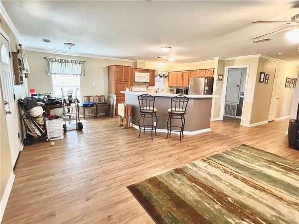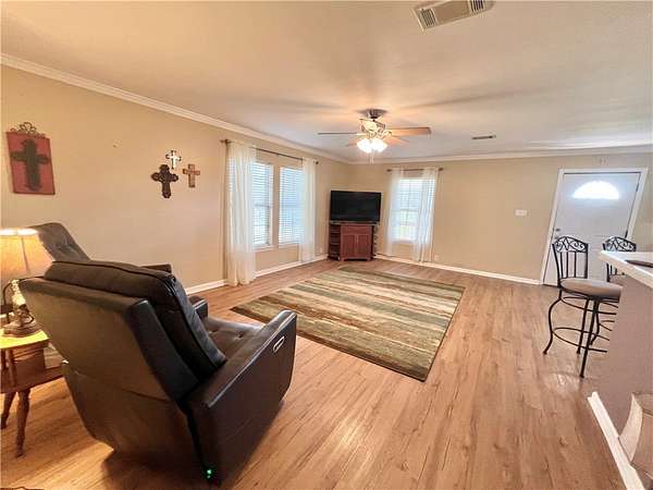 This beautiful 20-acre property offers a peaceful park-like setting and a three-bedroom, two-bath open-concept home. As you enter through the front entry, you're greeted by a scenic park area that sets the tone for country living at its best. The spacious kitchen features a long eat-in bar, perfect for gatherings and everyday meals. Both bathrooms include walk-in showers, while the primary suite also offers a relaxing jetted garden tub. Start your mornings or unwind in the evenings on the welcoming front porch or the screened-in back porch, surrounded by the beauty of nature. Parking and storage are abundant, featuring a carport, garage, and an additional equipment carport with a storage room. The property also includes a barn for livestock and a pond, making it ideal for those seeking a true rural lifestyle. Handicap ramp to the front door. Additional features include: a new 2025 HVAC system (inside and out), a Generac generator, RV electrical hookup, metal roof, and sun screens. This property combines comfort, functionality, and wide-open space-ready for you to make it home. More pictures to come.