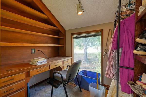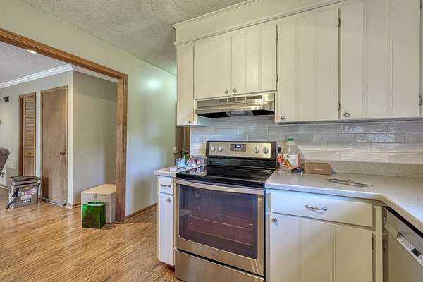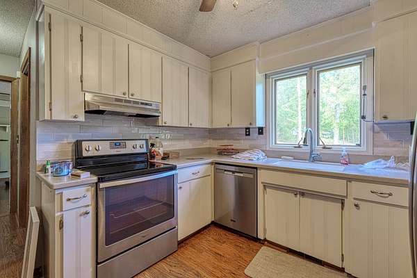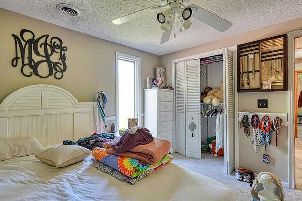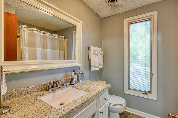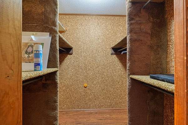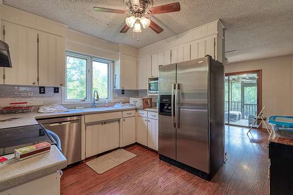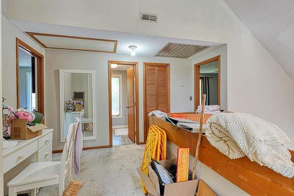 - Attic Stairs-Disappearing, Ceilings-Cathedral/Raised, Countertops-Solid Surface, Fireplace