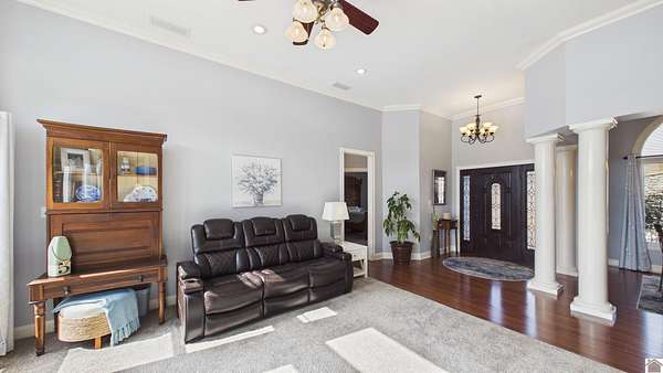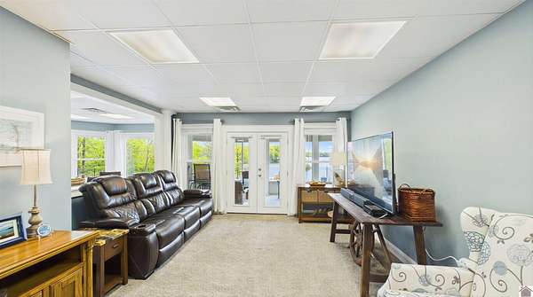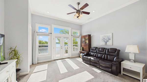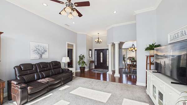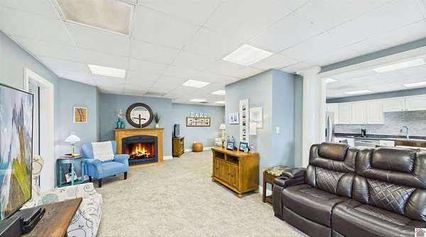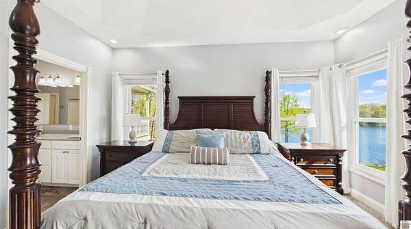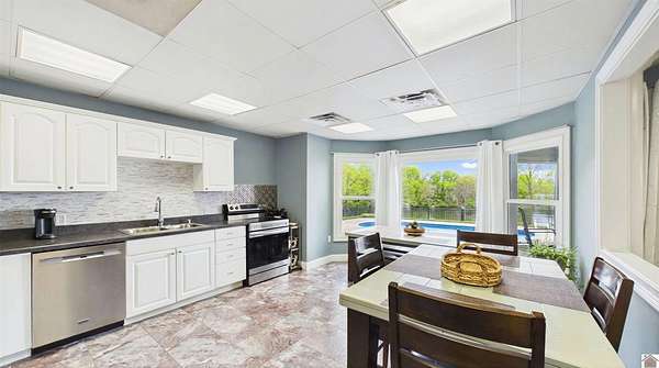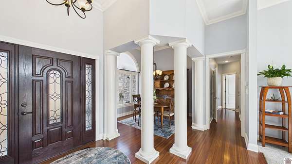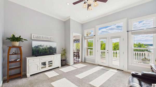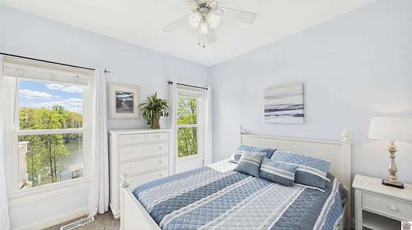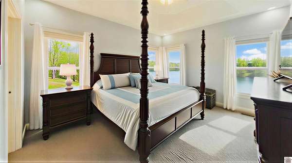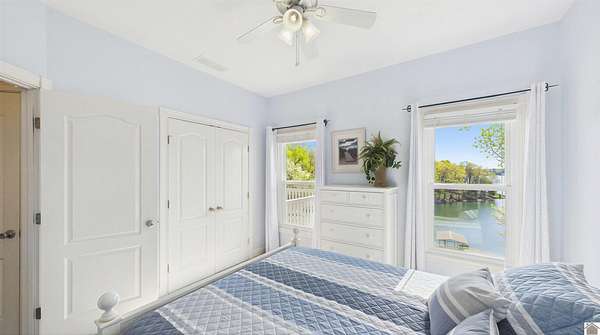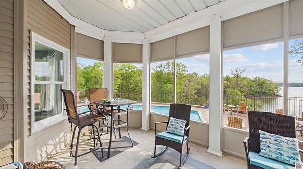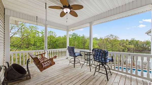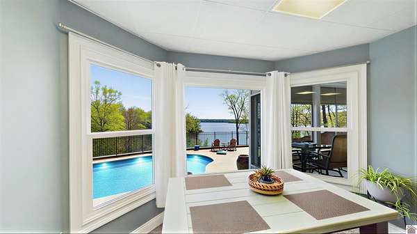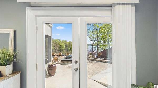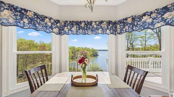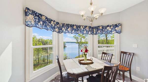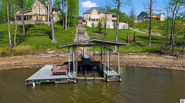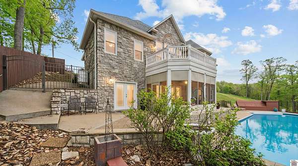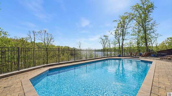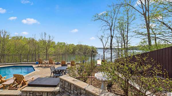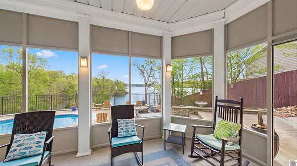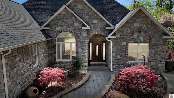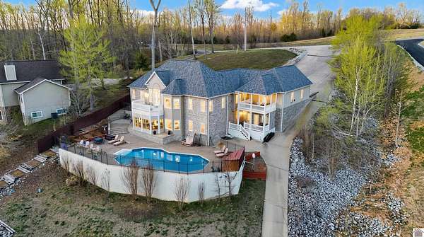 Welcome to 153 Chelsea, a luxurious waterfront oasis nestled on a 1.02-acre lot with commanding views of Lake Barkley. Built in 2008, this impressive 3,404 square foot residence boasts 5 spacious bedrooms, including 4 with lake vistas, and 3.5 baths, offering an idyllic retreat for family gatherings or vacation rentals. As you step into this stately stone exterior home, the grandeur of its open spaces will captivate you, starting with a separate dining room that sets the stage for memorable meals. Two full kitchens, one on each level, ensure effortless entertaining and the convenience of catering to guests or large family feasts. The home's design maximizes lake and pool views, allowing natural light to flood the interiors and providing an