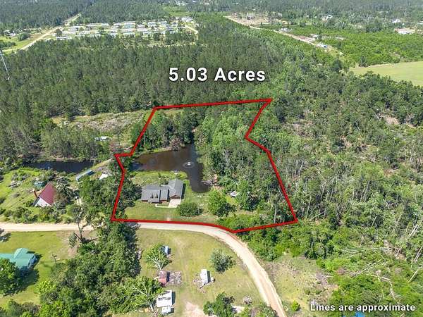 ASSUMABLE LOAN AVAILABLE AT 2.375%!! Welcome home to Golden Lane, You will be impressed with this 3 Bedroom , 2.5-bathroom property with over 3,000 square feet of heated living space situated on 5.03 acres. A multi purpose bonus room is just one of the many extras. This beautiful ponderosa boasts a spacious master suite with double walk-in closets and a custom walk-in tile shower. Outside, you'll find a fully stocked pond with a gorgeous resort-style fountain, a large covered back porch with breathtaking pond views, and a fully fenced backyard ideal for pets or gardening. The property also includes several detached storage buildings, a two-car garage, and ample space for hobbies or projects. Previously used as a functional mini-farm, this versatile property is perfect for anyone seeking tranquility, functionality, and endless possibilities. Cal today for a tour!