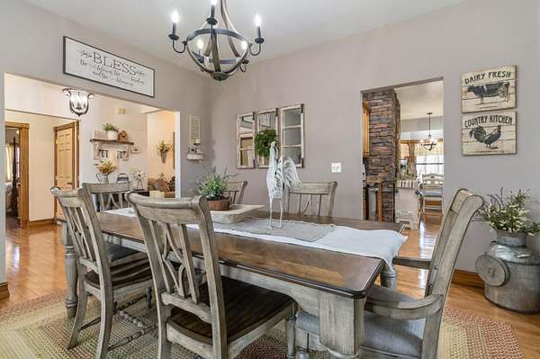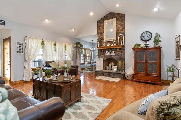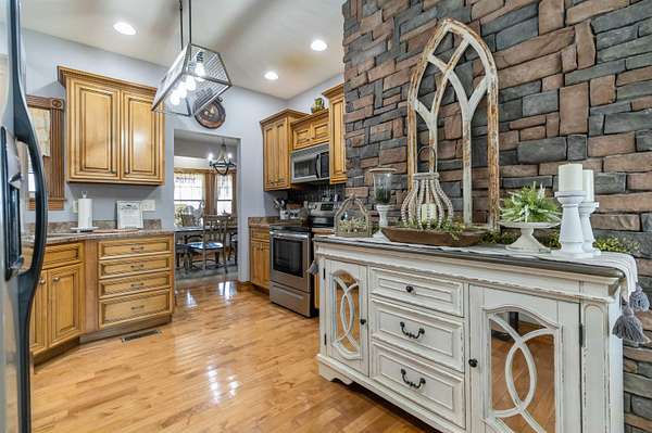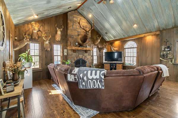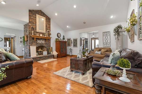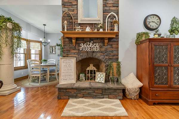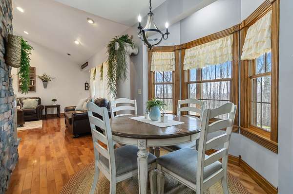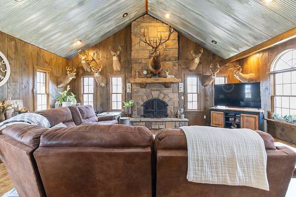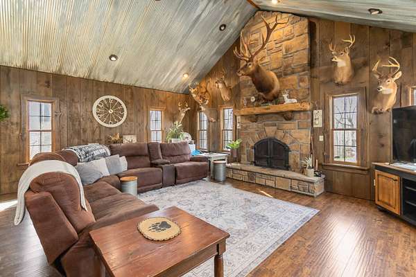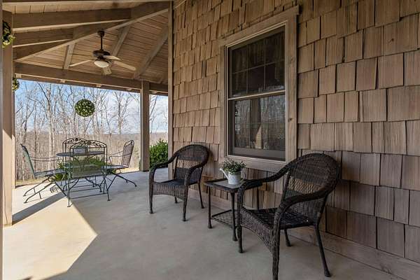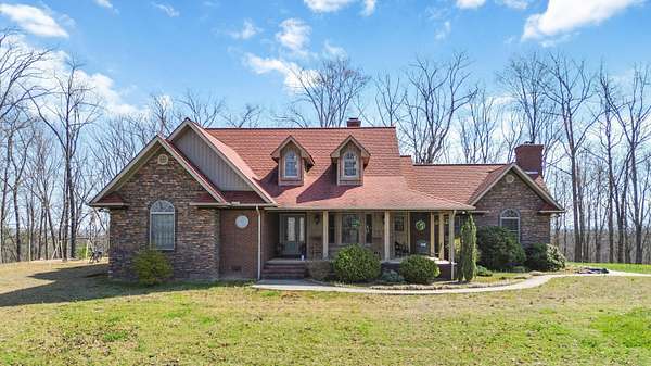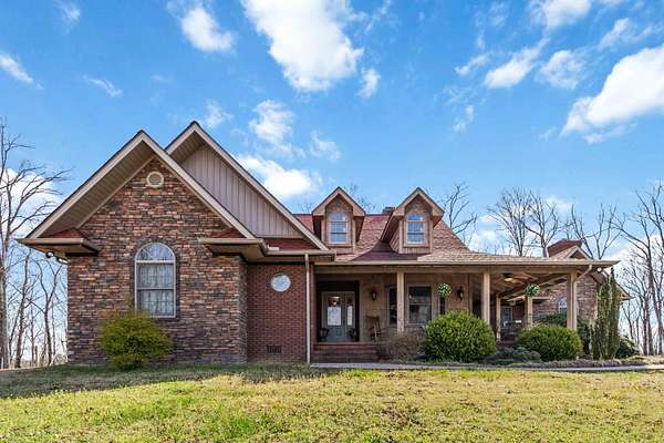 This 3-bedroom, 2.5-bath home offers approximately 2,430 square feet of living space and is situated on 10 acres in the desirable Bear Creek area of Strunk, KY, within the Big South Fork region. The home features multiple living areas, including a spacious living room, separate family room, formal dining room, and an additional nook - providing flexibility for everyday living and entertaining. Custom craftsmanship is evident throughout, including hardwood flooring and custom-built cabinetry in both the kitchen and bathrooms. The family room showcases detailed custom trim work surrounding the windows, adding character and a refined touch. Two stone fireplaces add warmth and charm, serving as inviting focal points within the home. The exterior features stone accents on the front and cedar shake detailing on the porch, enhancing the home's curb appeal. Additional highlights include walk-in closets and thoughtfully designed storage throughout. The property offers ample acreage suitable for a variety of uses, including potential for horses or outdoor recreation. A level area below the home may be suitable for future outbuilding or barn construction, subject to buyer. Additional improvements include a storage shed and a large chicken coop. Conveniently located in a peaceful setting, the property is just minutes from river access, nearby horse camps, and access to horse riding trails, as well as the Big South Fork National River and Recreation Area - offering a wide range of outdoor activities.