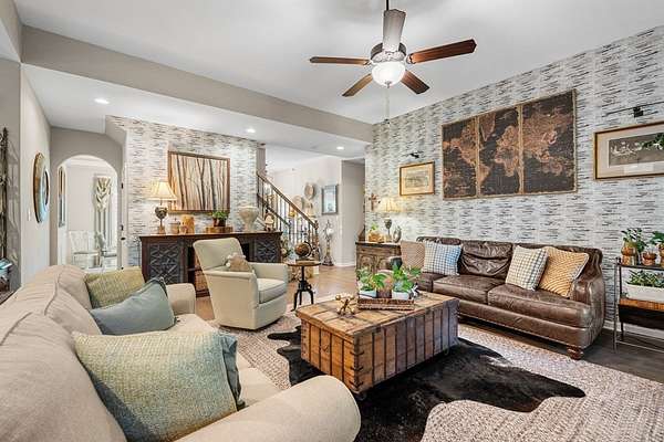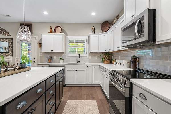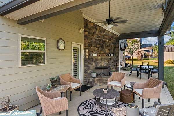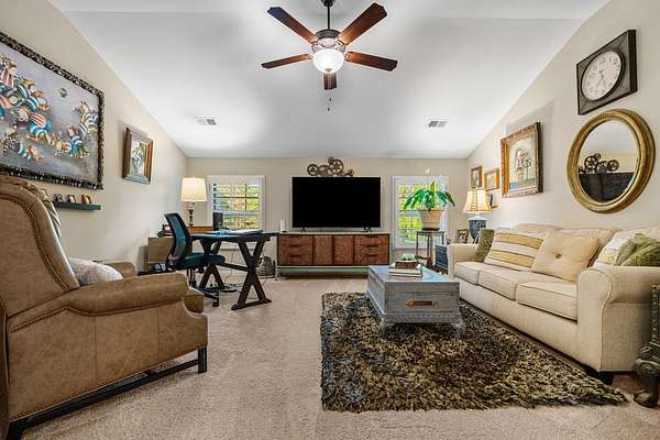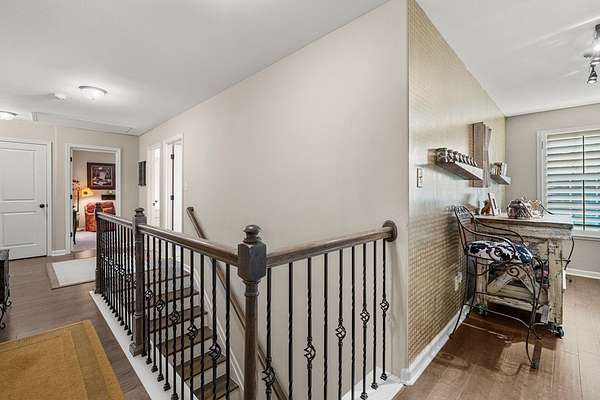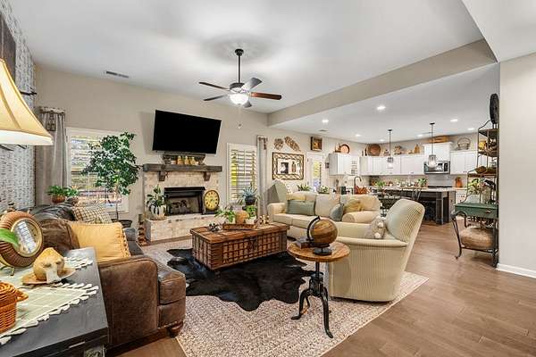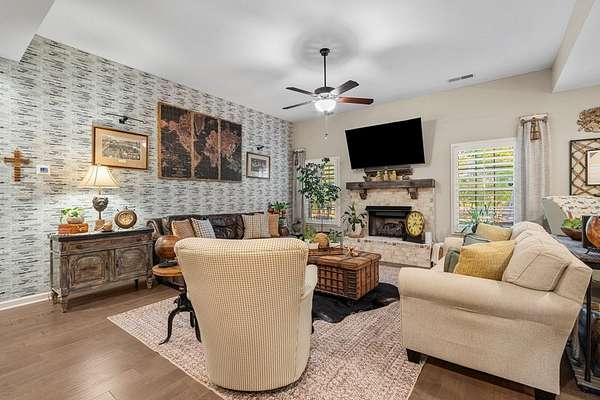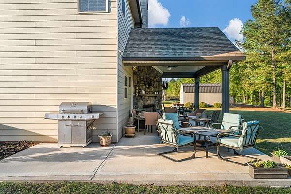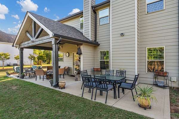 Welcome to 153 Abberly Lane, where comfort, style, and space come together on a lakefront property in Ellerslie. This stunning 4-bedroom, 3.5 bath home offers over 3,000 sq ft of thoughtfully designed living space, blending modern elegance with everyday functionality. From the moment you step inside, you'll appreciate the open-concept layout, upscale finishes, and inviting atmosphere. The spacious living area features a cozy fireplace and flows seamlessly into a beautifully appointed kitchen complete with quartz countertops, stainless steel appliances, a large island, and an oversized pantry, perfect for entertaining and daily living. For added convenience, the smart dishwasher, stove, and refrigerator can all be controlled from your phone, bringing comfort and technology together effortlessly. A formal dining room with coffered ceilings adds a refined touch for special gatherings. The main level owner's suite provides a private retreat with a spa-like bath, double vanity, and generous walk-in closet. Upstairs, you'll find 3 bedrooms and flexible living space, including a media room ideal for movie nights, game days, or an office setup. Major system updates add peace of mind, with the hot water heater and HVAC system both less than two years old. Step outside and enjoy one of the home's most impressive features: a lakefront setting designed for relaxation and entertaining. The signature Game Day Porch with fireplace offers the perfect place to unwind and enjoy peaceful water views in every season. Along the shoreline, dimmer-controlled lighting sets the perfect evening ambiance, while GFCI power outlets add convenience for outdoor enjoyment. The fully powered shed adds functionality, and the lakefront water purification system delivers fresh water at your leisure. 153 Abberly Lane is the kind of property buyers have been waiting for stylish, spacious, well-appointed, and beautifully positioned on the water in a setting that feels like home the moment you arrive.