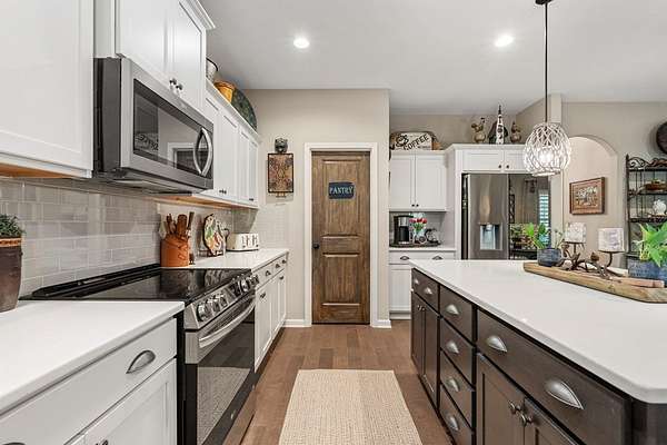 - Dishwasher, Disposal, Electric Range, Microwave, Refrigerator, Self Cleaning Oven
