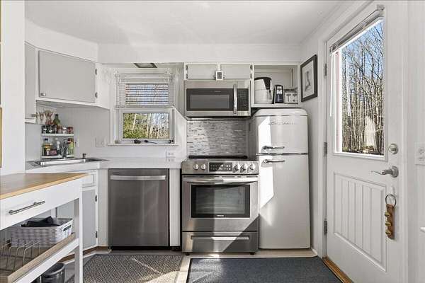 Charming 1954 Ranch in Orono - Discover easy, move in ready, single floor living in this sweet, freshly updated 2 BR home set on 2 acres with wooded trails in your back yard. Refinished hardwood floors and new flooring throughout. Kitchen features new appliances, while the living room offers a cozy electric fireplace and heat pump for efficient year round comfort. Step outside onto the spacious 12X16 deck for relaxing or entertaining. An oversized 2 car garage provides plenty of storage and includes a built-in dog kennel. Located just minutes from UMO, Bangor and the Bangor City Forest this home offers the perfect balance of convenience and quiet. Whether you're a first-time homebuyer or looking to downsize without sacrificing comfort or land, this property delivers!