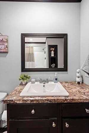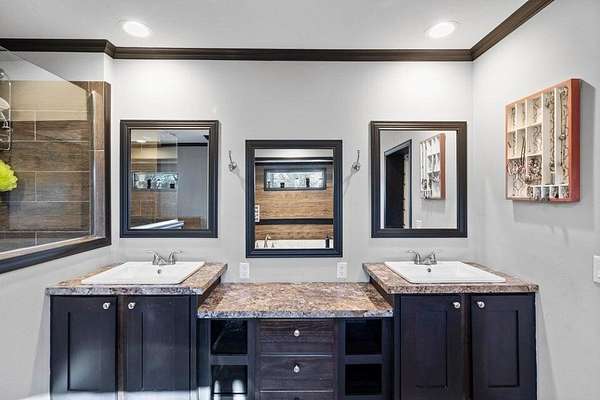 - Bathroom Mirror(s), Double Vanity, Kitchen Island, Open Floorplan, Primary Downstairs, Soaking Tub, Split Bedrooms, Walk-In Closet(s)