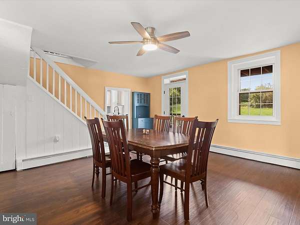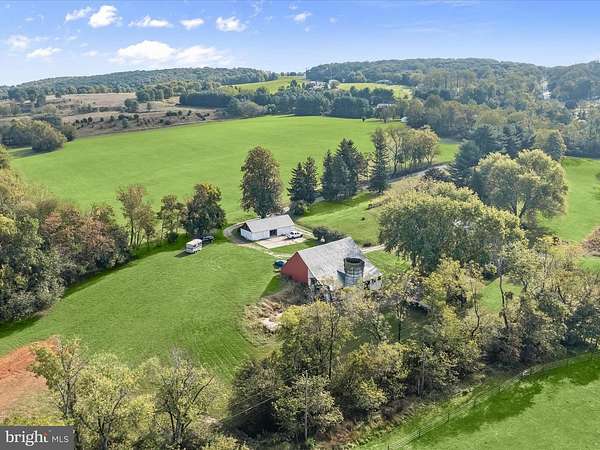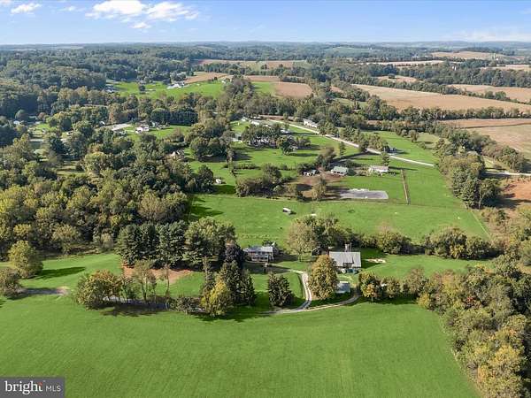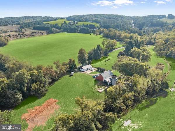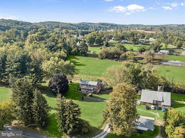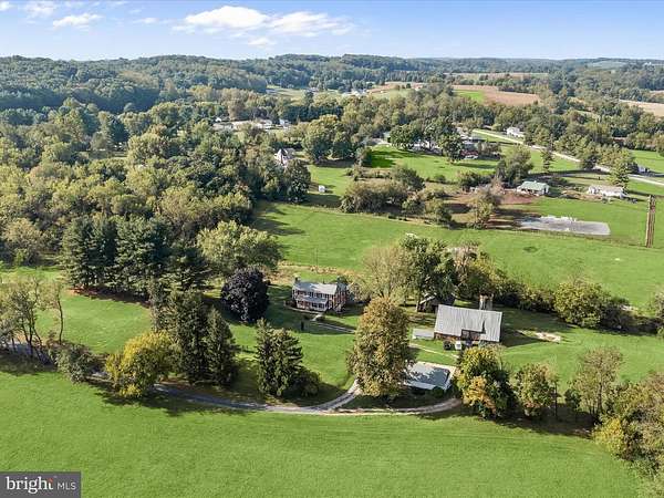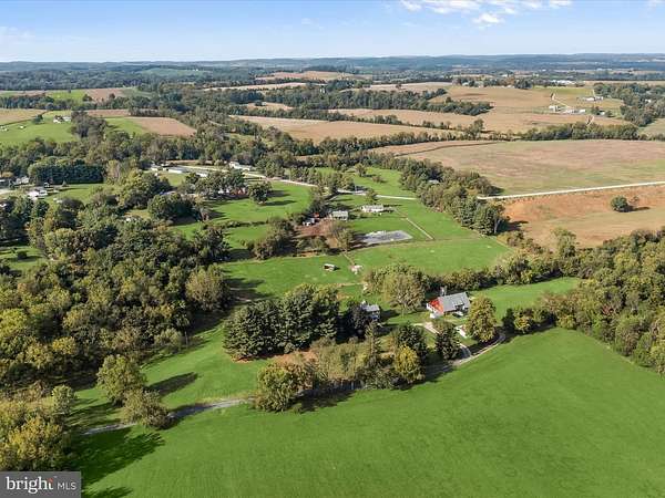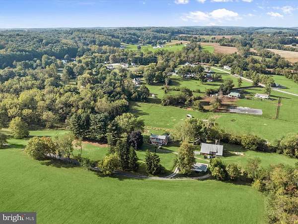 Full of charm and timeless architectural details, this 1920 farmhouse sits on over 15 picturesque acres, thoughtfully designed for both equestrian living and modern comfort. The property features a 3-car garage, a classic barn, two fenced pastures, two run-in sheds, and updated electric fencing, making it ideal for horses or hobby farming. Outdoor living shines with a welcoming front porch, a spacious deck, a balcony with sweeping views, and a firepit for relaxing under the stars. Step inside to discover a home that blends historic character with modern updates. The dining room, situated perfectly between the kitchen and living room, features tall ceilings and luxury vinyl plank flooring that seamlessly flows throughout the main spaces. The living room exudes warmth with a wood-burning fireplace, built-in bookcase, and crown molding, while the kitchen delights with granite counters, stainless steel appliances, subway tile backsplash, ample storage, and a breakfast area. A main-level bedroom with plush carpet and a beautifully updated full bath completes this level. The upper level invites you with a primary suite that offers a sitting room, office, or possible additional bedroom with private staircase access. Two more bedrooms and a hall bath with hexagon ceramic tile, balcony access, and a clawfoot tub round out this level with vintage appeal. The finished lower level expands your options with space for an office or possible bedroom, workshop, laundry, and abundant storage. A detached cottage provides even more flexibility, whether for guests, a private office, or a creative retreat, featuring a living room with a wood-burning stove, plush carpet, loft, and bonus area. Recent updates include driveway, fencing, electric fencing, and run-in sheds. Conveniently located near MD-97, MD-140, and MD-31, this rare 1920 estate combines historic charm, architectural character, and equestrian amenities into a truly special offering.