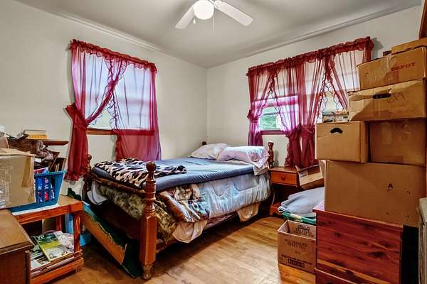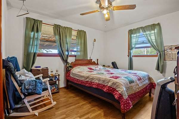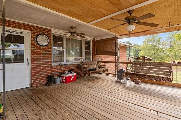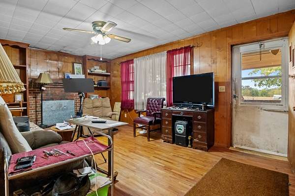 All brick home on beautiful much sought after road. Property has original hard wood floors, lots of opportunity to invest, Flip or Upgrade. Open Kitchen to dining area. Extra spacious room used for a flex room or add a closet to make a bedroom. With this 3.95 acre property it has lots of road frontage and a stocked pond in back of property with a walk ramp for fishing. With a little work you can have you a mini farm. Separate rental home on property currently renting $250.00 a week. Property on well but has city water at road. Property has natural gas. Cash or Conventional loan only -- "AS-IS"