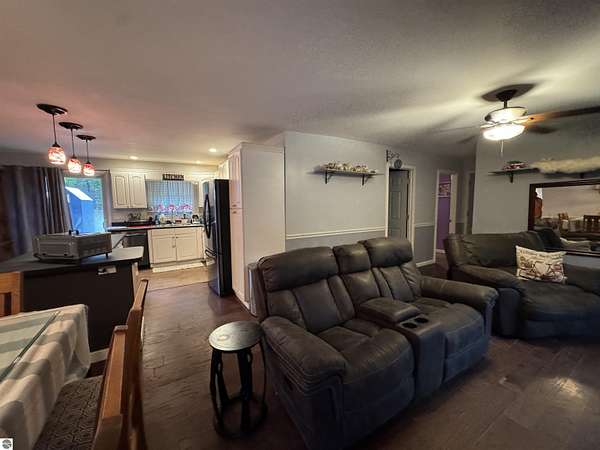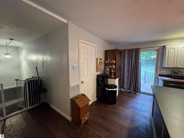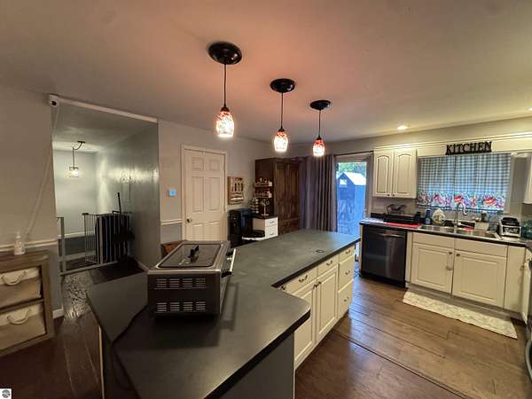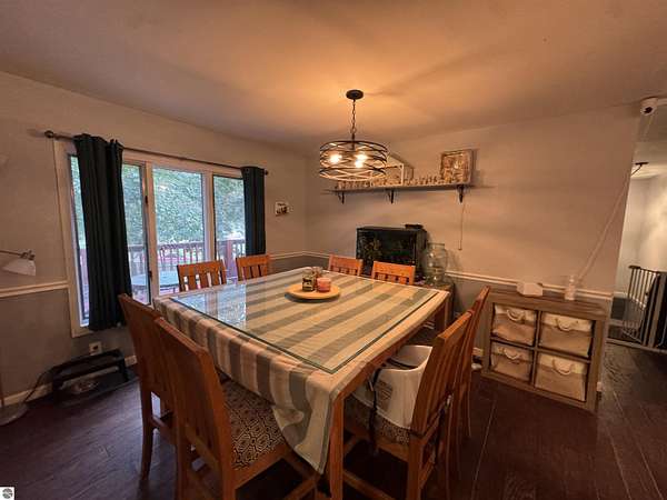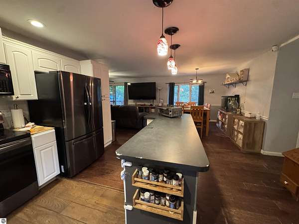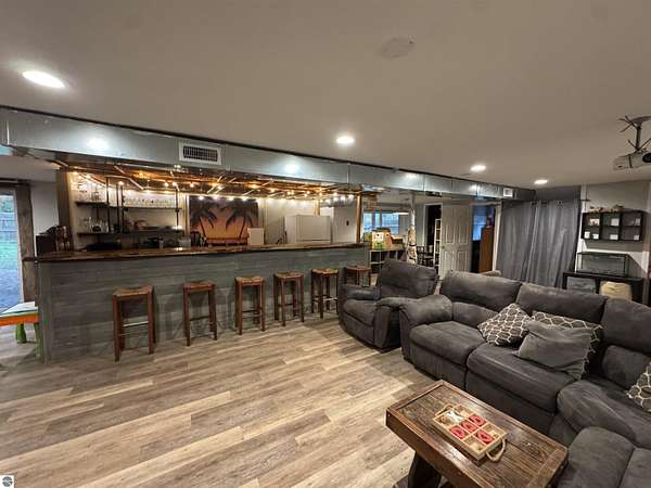 Nestled on 3.5 wooded acres just north of Cadillac, this spacious raised ranch offers over 3,100 sq ft of living space and is ready for your finishing touches and updates. Inside, you'll find 4 bedrooms and 3 full baths, including a large master suite with a walk-in closet, fireplace, and slider leading out to the porch. The open-concept kitchen, dining, and living area is perfect for gatherings, complete with a large island and pantry. Downstairs, the finished walkout basement is designed for entertaining! A custom tiki bar featuring a black walnut countertop, stainless steel sink, and a generous family room sets the scene for hosting family and friends. Surrounded by mature hardwoods, this property provides a private, peaceful setting while still offering an easy commute to both Traverse City and Cadillac.