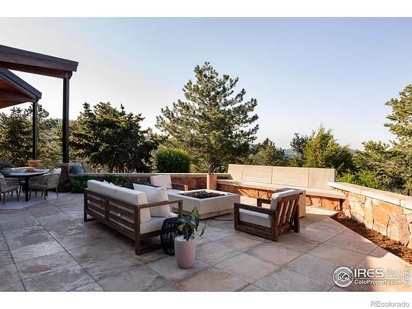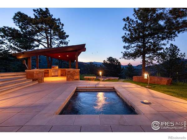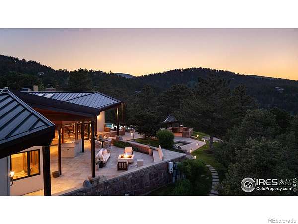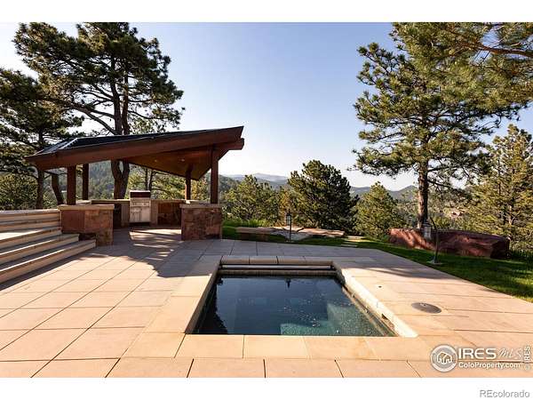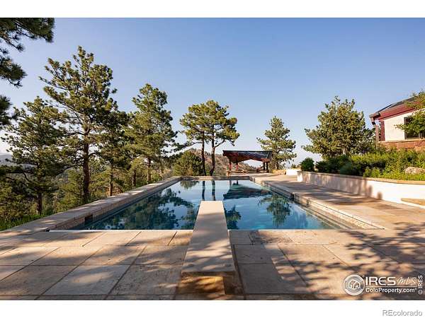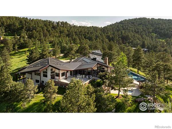 A private, mountain sanctuary just minutes from Downtown Boulder and Pearl Street! The Ponderosa Mountain Estate offers rare architectural pedigree on a 10.6-acre level lot with expansive mountain views! Designed by renowned architect Hobart D. Wagener, this exceptional property features an elegant main residence, a private guest apartment, and lush landscaping. The estate embodies a seamless indoor-outdoor lifestyle, ideal for relaxation and entertaining, with immediate access to world-class outdoor adventures including hiking, biking and skiing. The 7,016 square-foot main residence is bathed in natural light, featuring Brazilian cherry hardwood and stone flooring, and redwood cedar ceilings with skylights. The vast great room is perfect for relaxation, with multiple fireplaces and bespoke cabinetry. Enjoy the gourmet kitchen with custom cabinetry, soapstone counters, and top-tier appliances like a Wolf range and Sub-Zero refrigerator. Adjacent spaces include a kitchen lounge, a cozy library, and an inspiring art studio. The lower level hosts a home theater, snack bar, garden-level office/bedrooms, and a massive laundry room. The main-floor owner's suite offers a private sitting room, wood-burning stove, and a luxurious spa bathroom. Additional accommodations include secondary bedrooms and a garage guest apartment with a chef's kitchen and home gym. Situated on a prime hilltop lot, the estate enjoys breathtaking views and year-round sunshine. The outdoor amenities rival a private resort, with an oversized, heated swimming pool, sauna and private hiking/biking trails winding through the property. The estate offers extensive infrastructure with two water sources (Pine Brook Hills water and a private well)-a rare and valuable asset-along with advanced home automation and security systems for exceptional comfort and reliability. Experience iconic mountain living in this exceptional Boulder retreat.