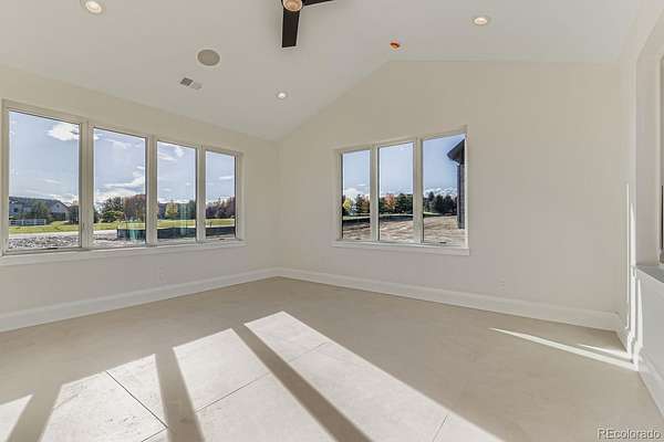 Step through the grand entrance with 14’ ceilings into a world of exquisite craftsmanship with state-of-the-art amenities and details at every turn. The heart of the home is a spectacular open-concept great room, featuring a linear fireplace accent wall, soaring windows, and expansive 14’ cathedral ceilings. It flows effortlessly into the chef's kitchen boasting a full suite of Thermador appliances, including a 48" gas range, custom hood, dual dishwashers, 30/30 column refrigerator and freezer, and an impressive quartz waterfall island with full-size vegetable sink. For ultimate convenience, a second, private pocket kitchen/pantry with a built-in espresso station, cabinets, prep sink and counters, and ice maker ensures every event is flawless. The space opens to the outdoors via a 16’ NanaWall system, creating the perfect indoor-outdoor flow. The main floor is both grand and practical, featuring a gorgeous formal dining room with 12’ ceiling, a study with custom built-ins, an inspiring 1/2 bath and two secondary bedrooms, each with ensuite bathroom. The primary suite is a sanctuary, featuring a reeded-marble fireplace, a top-tier six-piece bath with a freestanding tub and spa-likeshower, and massive his and her walk-in closets with custom built-ins. The walk-out basement features a full-sized kitchen with wine storage and pass-through bar for poolside service, a spectacular game room, a stadium media room with beverage center, and two additional ensuite bedrooms. Personal wellness center includes a gym, sauna, steam room, and bath with a secondary laundry. An upper-level bonus room offers flexible space for a game room, office, or lounge. Step outside to your maintenance-free covered deck with a built-in kitchen and a dual-sided gas fireplace, overlooking the future private pool retreat on just under two acres plus oversized five-car garage. The property also includes a separate pool house with great room, kitchen and office or guest quarters.