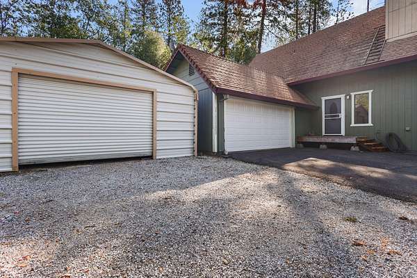 Tucked away in a serene forest setting, this updated 3-bedroom, 2-bathroom home offers the perfect blend of cabin in the woods and modern living. Step inside to soaring vaulted ceilings and an open-concept floorplan connecting the living, dining, and kitchen areas. Upstairs, you'll find a cozy loft and a spacious primary suite featuring a fully renovated bathroom. Enjoy outdoor living on the brand-new front deck or shoot hoops on your private half basketball court. The property includes a 2-car attached garage, an insulated shop with mini splits, a storage shed, and RV parking at the base of the driveway--plenty of room for all your vehicles, gear, and toys. The HVAC system is new and the natural tree canopy provides shade until noon in the summer, keeping the home cooler. A gated entry enhances privacy. All this, just 5 minutes from Shasta Lake and 15 minutes from downtown Redding, with easy access to I-5.