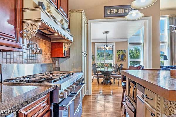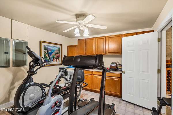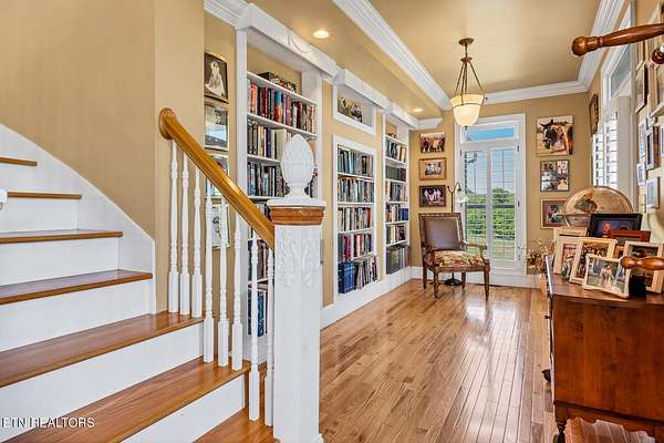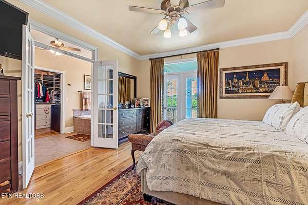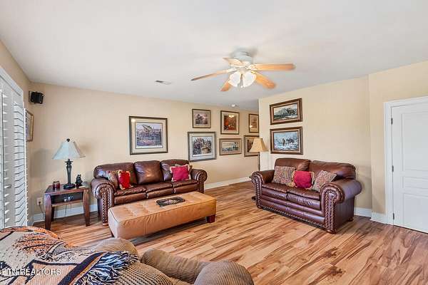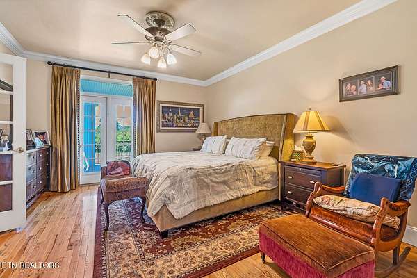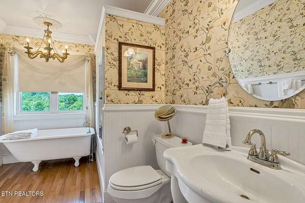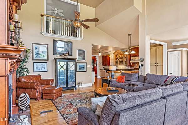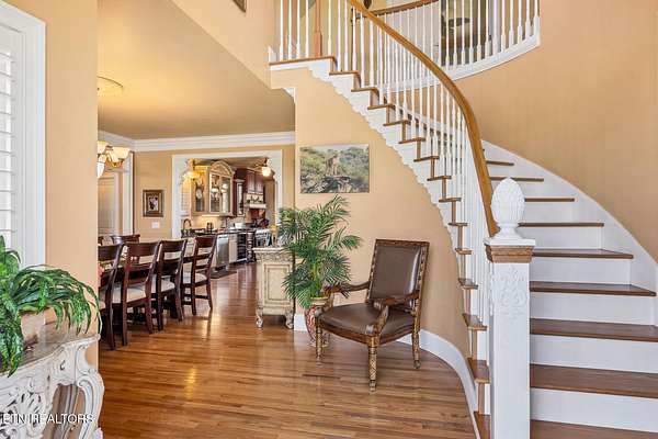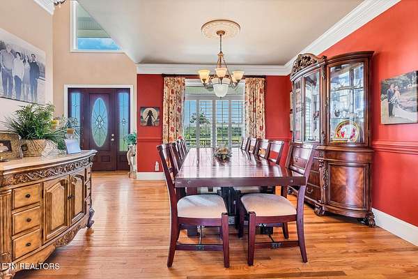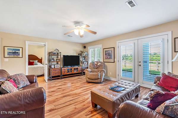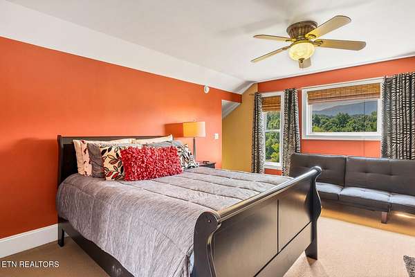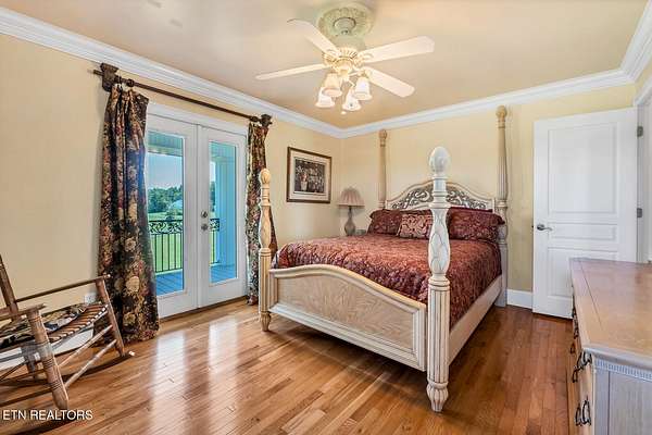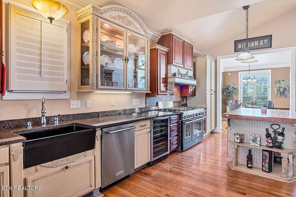 Discover this stunning equestrian property nestled at the foothills of the Great Smoky Mountains where spectacular mountain views create a breathtaking backdrop for country living. This turnkey farm spans 23 rolling acres, completely fenced with a year-round creek and secured by a gated entrance. The elegant antebellum-style home welcomes you with its impressive design and thoughtful layout. Inside, you'll find a gourmet kitchen perfect for cooking enthusiasts, paired with a spacious formal dining room for memorable gatherings. The living room features custom built-ins and soaring vaulted ceilings that create an inviting atmosphere. The main level includes an updated master suite with private balcony access, offering breathtaking views of the pastures and mountains beyond. The versatile floor plan extends to a fully finished basement complete with its own kitchen, living area, exercise room, bedroom, and patio access. This space works perfectly as an in-law suite or additional family quarters. Horse lovers will appreciate the comprehensive equestrian facilities. The property includes a fully enclosed arena with premium rubber and sand footing suitable for various riding disciplines. Four interconnected pastures feature automatic waterers and run-in sheds for livestock comfort. Two well-appointed barns provide eight matted stalls, each equipped with electricity and direct turnout access. Additional amenities include a spacious tack room with custom cabinetry, multiple feed rooms, and ample storage areas. A large storage building offers ideal space for hay storage or equipment parking. As an added bonus, the property includes a two-acre vineyard site ready for planting. This exceptional Smoky Mountain horse farm combines luxury living with professional-grade equestrian amenities all enhanced by spectacular mountain views.