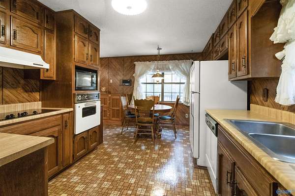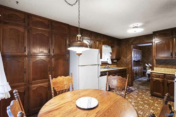 Located in the Arab City School System, this 2,375 sq ft home offers 4 bedrooms, 2.5 baths, and is situated on 6 wooded acres with 410 ft of creek frontage on Gilliam Creek. Step outside onto the deck and immerse yourself in the peaceful backyard, surrounded by hardwood trees. A circular driveway and a double attached garage offers ample parking and convenience, while the two-story detached garage/shop is a haven for hobbyists or anyone seeking potential extended living space. Enjoy a peaceful, private setting with a convenient location just minutes from town. Upgrades since 2020 include new HVAC, roof, gutters/downspouts, cooktop and hot water heater. Property being sold as is.
