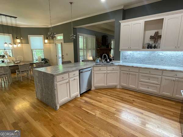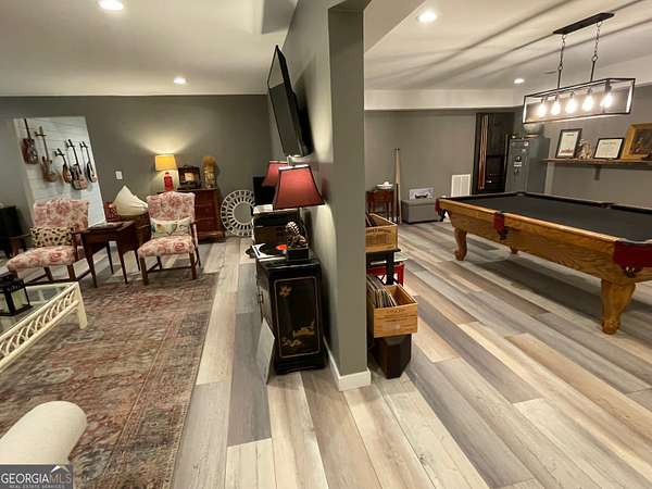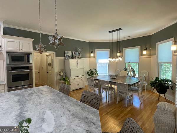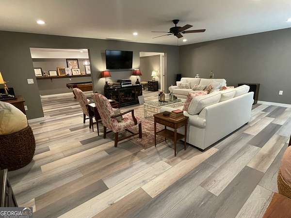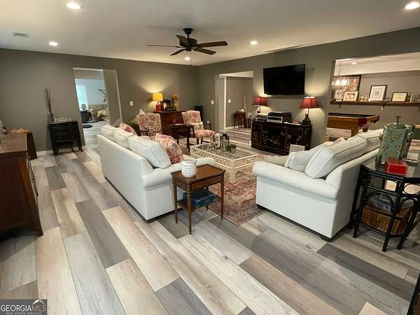 Welcome to your new home, tucked away in one of Monroe's most sought-after neighborhoods. Alcovy Lakes, with 3 stocked lakes, pavilion, playground and estate sized lots; all just minutes from historic downtown Monroe. This all-brick, craftsman-style ranch has the perfect mix of classic charm and modern comfort, with 5 spacious bedrooms, 4 full bathrooms, and 2 half baths. Plus, it has a brand NEW ROOF and a freshly remodeled owner's bathroom-both done in 2024. It's a great spot for family life or hosting get-togethers. The gourmet kitchen is stunning-updated with gorgeous natural stone quartzite counters, double convection ovens, a separate cooktop, and tons of cabinets and prep space. Whether you're whipping up a quick dinner or cooking for a crowd, this space is ready for it all. Right off the kitchen, the oversized breakfast room fits eight easily but still feels warm and inviting. Head outside to your own private backyard retreat. The PebbleTec pool is perfect for relaxing, and when the day winds down, you can hang out in the finished terrace level. It's got everything-your own full pool bathroom, a stylish bar, and space for billiards or just lounging. Got cars, tools, or toys? You're going to love the huge 25x45 detached garage with 12-foot ceilings-perfect for a workshop or adding a car lift. It fits 4 vehicles, plus there's an attached 4-car garage too. That's space for 8 cars in total! Need to travel? You're just close to I-20 for easy access to the airport or Atlanta. And if you're heading to Athens for shopping or game day, Hwy 78 is just minutes away. Photos can only show so much-you've got to see this place in person to get the real feel. Come check it out. The moment you pull in the driveway, you'll know you've found something special.