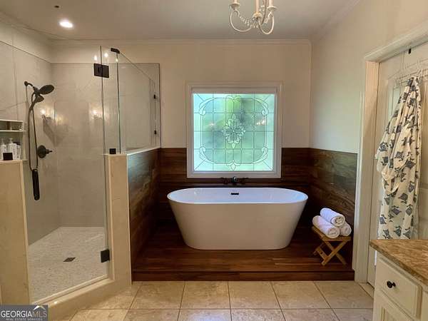 - Double Vanity, High Ceilings, Master On Main Level, Separate Shower, Soaking Tub, Split Bedroom Plan, Tile Bath, Tray Ceiling(s), Walk-In Closet(s), Wet Bar