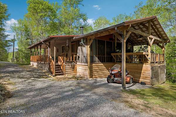 Escape to the mountains and unwind in this charming 3BR/2BA cabin tucked in the heart of the Cherokee National Forest, just minutes from Indian Boundary Lake, the Tellico River, and Bald River Falls. Whether it's trout fishing, hiking, horseback riding, or simply soaking in the scenery, this location delivers the best of East Tennessee outdoor living. The home features numerous updates, including an expanded upstairs primary suite, beautifully remodeled kitchen with custom cabinetry, leathered granite countertops, backsplash, pot filler, pull out spice rack, and new appliances. Cozy up by the propane fireplace with blower and thermostat for year-round comfort. The walk-out basement offers additional living space with 2 bedrooms, 1 bath, (with room for a future kitchenette), pantry, and laundry - ideal for guests or multi-generational living. A transfer switch is already in place for generator use (generator does not convey). Enjoy peaceful mornings and evenings from multiple outdoor spaces - front and back porches, screened-in porch, and an outdoor kitchen with wood stove. The backyard is a 'park-like' setting, and on the land includes a workshop (with heat), gazebo by the creek, fire pit, and picnic area - all perfect for relaxing or entertaining. Surrounded by nature, you'll often spot deer, turkey, hawks, and more. And the scenic drive into Tellico Plains on the Cherohala Skyway is one you will never get tired of! Note - There is a voluntary $50 per year road maintenance fee. If you are looking for a peaceful mountain retreat with modern updates and unmatched beauty, this is it. Buyer and buyer's agent to verify all facts.