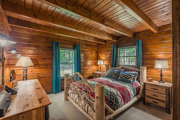 OPEN HOUSE FOR 1-3-26 CANCELLED. Edinburg NY - Fabulous opportunity for those who desire peace, solitude and nature! Rustic luxury on 202.7 acres of unspoiled wilderness land with a 3-4BR/3BA luxury log cabin of 2591 sq ft with attached 2 car garage. Two streams meander through this major parcel of land with valuable timber and every sort of wildlife you can imagine in the Adirondacks. A dream home get-away with wood floors, stone wood burning fireplace, a fully fenced rear yard ideal for pets, inground fiberglass pool. There is a gourmet kitchen w/SS appliances & granite counters. The full basement offers add'l living space opportunity. An amazing 37' x 43' custom metal barn with its own electric service can hold all the cars, toys, boats, 4-wheelers or whatever you desire! The standby generator keeps you safe during winter storms. This is the quintessential Adirondack log cabin with soaring vaulted ceilings, exposed beams, built-ins, two balconies, three NEW baths. The house is set 831' back from the road just across from the Great Sacandaga Lake. For those that dream of lake access there is an additional 3 acre parcel as a potential building site with a 12' deeded access to the Great Sacandaga including a mooring and dock! The lakeside parcel can be included for a package price of $995K.
