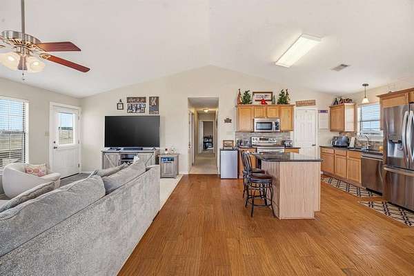 Country living just minutes from Stephenville! Situated on 2.15 acres off pavement, this well maintained home offers space, comfort, and thoughtful updates throughout. Designed with an open concept layout with no wasted space, creating a spacious and inviting feel throughout. The kitchen has been beautifully updated with new granite countertops, new backsplash, and new appliances, plus a pantry offering ample storage. Additional improvements include a new roof, new flooring, and updated tile surrounding the wood burning fireplace. Bedrooms are generously sized, and the primary suite offers a roomy bath and plenty of space to unwind. Enjoy outdoor living with a large covered front porch and an expansive deck ideal for gatherings and entertaining. The property is landscaped and includes a storage shed. With over 2 acres, there's plenty of room for a horse, small livestock, shop, future additions or simply enjoying the extra space. Move in ready and exceptionally well maintained.