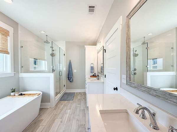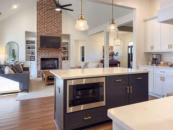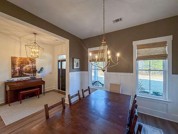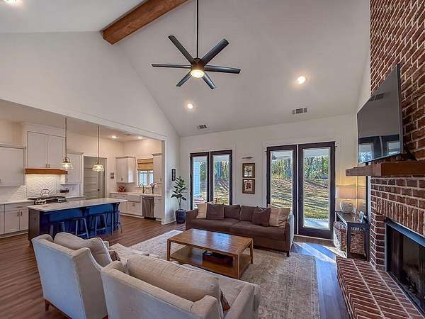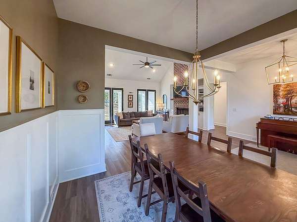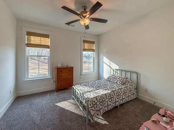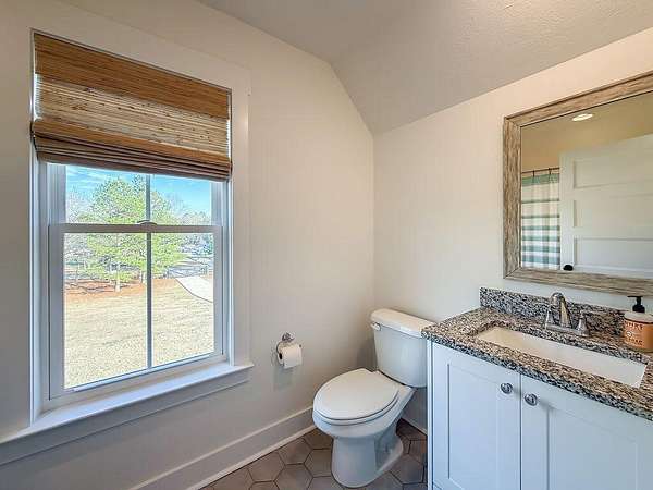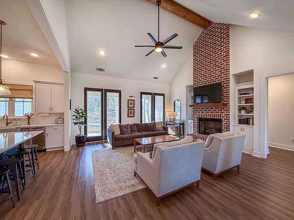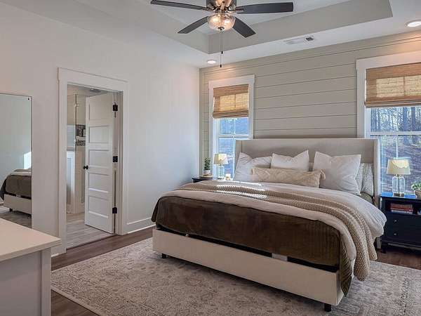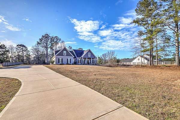 Gorgeous 1.5-story home situated on 2.71 fully fenced acres with gated access in Columbia County, thoughtfully built by Greenhead Homes. The 2.71-acre lot is mostly flat and rectangular, offering exceptional usability, flexibility, and space for future additions, recreation, or simply enjoying wide-open privacy. This classic farm-style design welcomes you with a charming rocking-chair front porch and timeless curb appeal. Inside, the open-concept floor plan is anchored by a stunning great room with vaulted ceilings, rustic wood beams, and a striking floor-to-ceiling brick fireplace flanked by custom built-in bookshelves--creating a warm and inviting focal point. The gourmet kitchen is a true standout, featuring white cabinetry, elegant quartz countertops, high-end appliances, a gas range, and a custom wood-accented hood vent. The kitchen sink overlooks the beautiful acreage, offering serene views while you cook. A spacious walk-in pantry with French doors provides abundant storage and functionality. The light-filled primary suite offers a peaceful retreat with an ensuite bathroom showcasing dual vanities with quartz countertops, a freestanding soaking tub, a custom-tiled shower, and direct access to the oversized walk-in closet. Nearby, the large laundry room includes a utility sink, ample storage, and a convenient mud bench. Two additional bedrooms on the main level each feature walk-in closets and share a full bathroom, providing comfort and privacy for family or guests. Upstairs, you'll find a generously sized bedroom with its own full bathroom and walk-in closet--ideal for a guest suite, home office, or bonus space. Outdoor living is just as impressive, with a covered patio perfect for relaxing and taking in the sweeping views of the private acreage. With level, rectangular land that maximizes usability, this property offers a rare blend of privacy, craftsmanship, and country charm -- all just minutes to downtown Harlem & quick access to I-20.