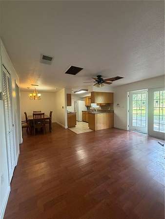 opportunity to live on 5 Lucious acres! home has 3 beds 2 baths, living room, kitchen/dining area and an additional living area on the back of the home. there is a flex room with no closet so could use as an office or storage room. Dead end street.