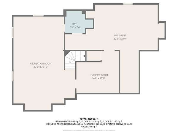 - Basement, Bathroom x 4, Bedroom x 4, Dining Room, Exercise Room x 2, Family Room, Game Room, Laundry Room