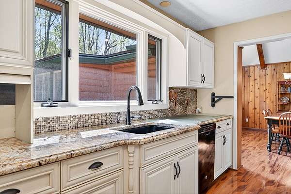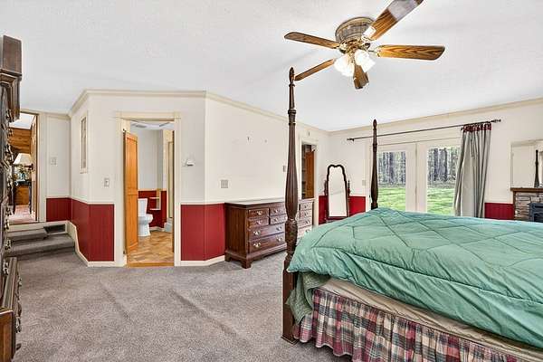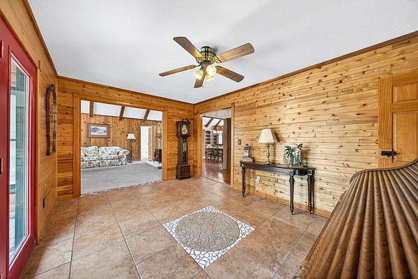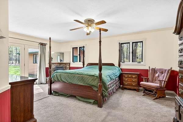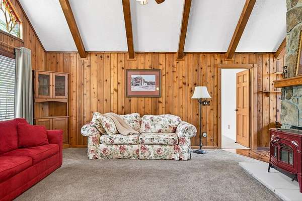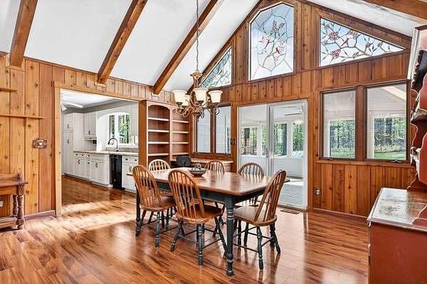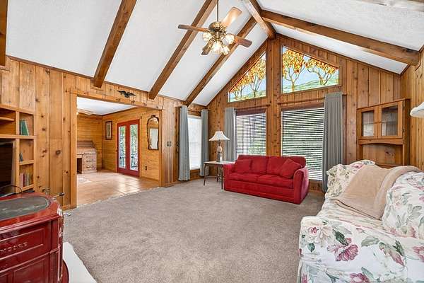 This charming, well-maintained ranch style home is bursting with character & charm. Set on 4 acres, at nearly 2000 sq ft. features include: 2 primary suites, & bonus room that serves as a 3rd bedroom w/closet. Upon entering, an appealing foyer welcomes you into this beautiful home. The living room boasts cathedral ceilings with beams, offering great natural light and a cozy wood-burning stove. The dining room features built-in shelving and a desk area, also showcasing cathedral ceilings with beams. You'll love the spacious sunroom, equipped with heat & excellent views of the backyard. The kitchen is classic, featuring off white cabinetry and granite countertops. The freshly painted converted garage offers a versatile space that could serve as a den, hobby room, or family room. Additionally, the detached garage/workshop is substantial, providing great storage and more storage with attached shelving & attic space. Put TOP OF YOUR LIST. All information deemed reliable but not guaranteed.