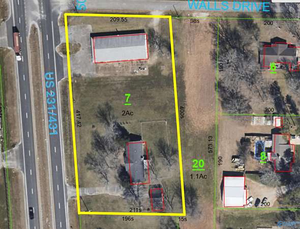 Est $6,128/moDon't miss this opportunity! 417 feet road frontage on Hwy 231/431! This 2-acre property features a 5,000 sq. ft. building plus an additional home-ideal for office, retail, or investment use. With high visibility, heavy traffic counts of approximately 27,000 cars/day, and endless potential, this property is perfect for businesses seeking growth in a booming area with Space Command coming to Huntsville! Don't miss your chance to own a prime corner location with both commercial and residential possibilities!