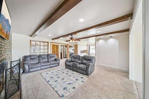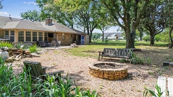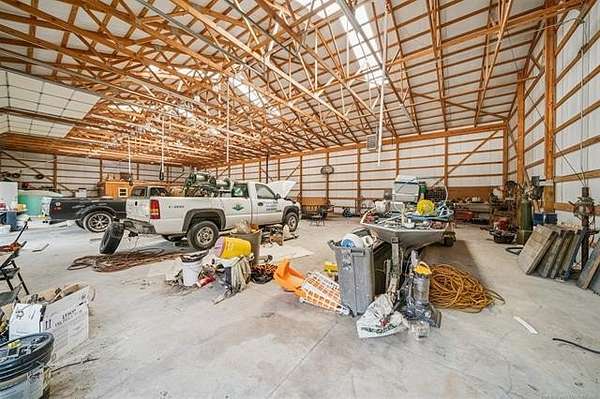 Great home that sits on 5 acres m/l. Including three different outbuildings, one being a 50' x 100' with electrical and wired for 220, with a pit for working on cars, an office, heaters, and a bathroom. Another shop is a 36' x 36' with a large sliding door. The home is a 3 bedroom, 2 bathrooms, 2 car garage, with two living areas and two dining areas. The washer and dryer are currently in the primary bathroom, but there are hookups in the garage for laundry as well. The outdoor area features a Koi pond (no fish) with a fountain, and a fire pit. There is a water well on the property that feeds sprinklers in the front yard. There is an area near the back of the property that used to be used as a gun range.