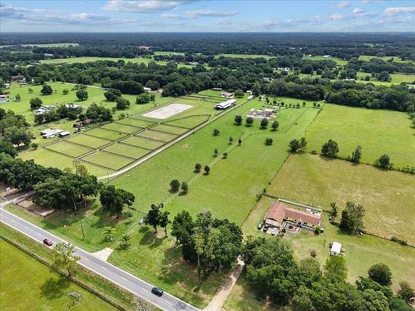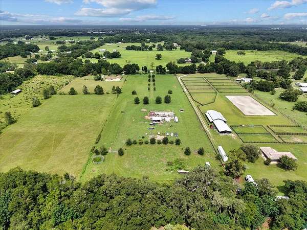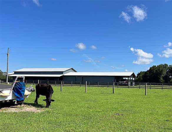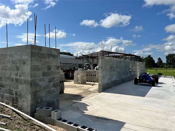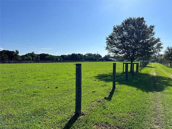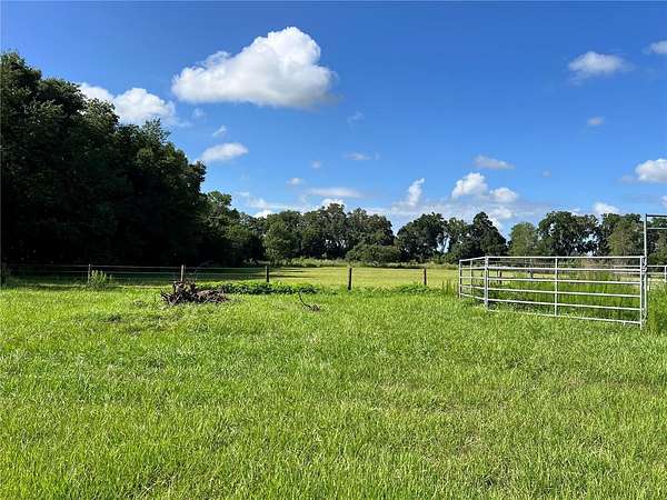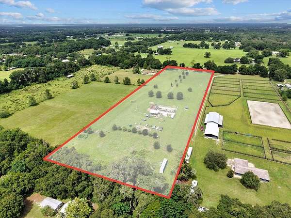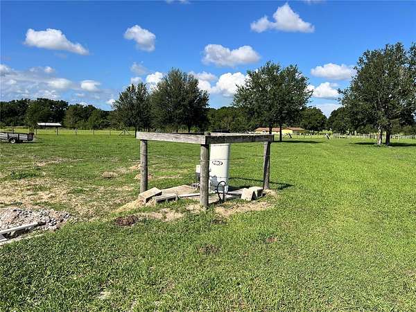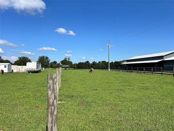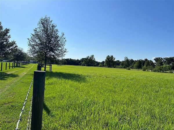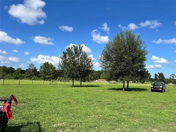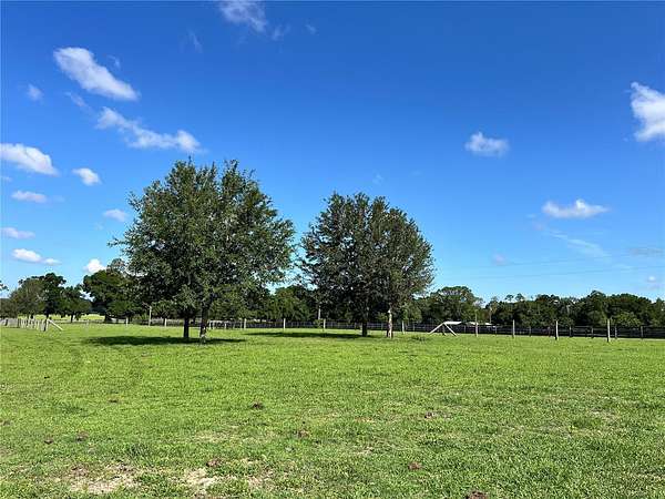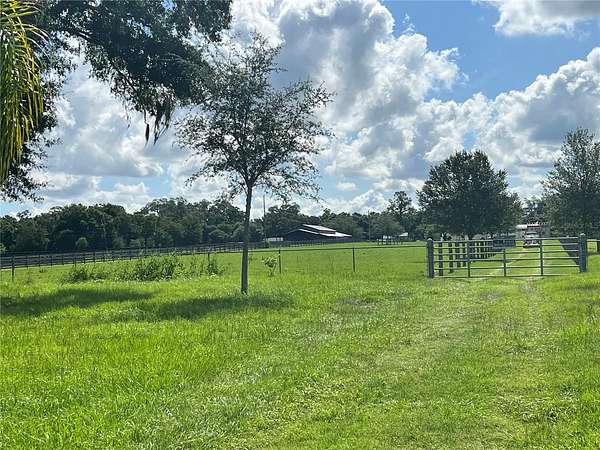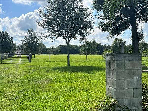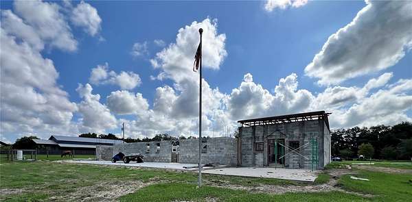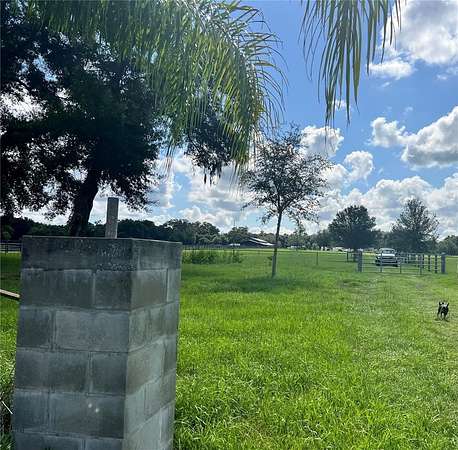 This breathtaking 10 acres is cleared, fenced and cross-fenced with high-speed internet! Currently has seller's cattle. Building already started (with permits) with concrete walls (20 x 40 safe house and barn 46 x 70), both with a large patio slab in front. Most building materials will go with sale. Well and septic in place, 2 sheds buildings and trailer go with sale. This property is flood zone X and is high and dry. There is a retention area in the rear of the property, along with some hundred year + oak trees! 4 miles from the Villages and about 10 miles from Hospitals.