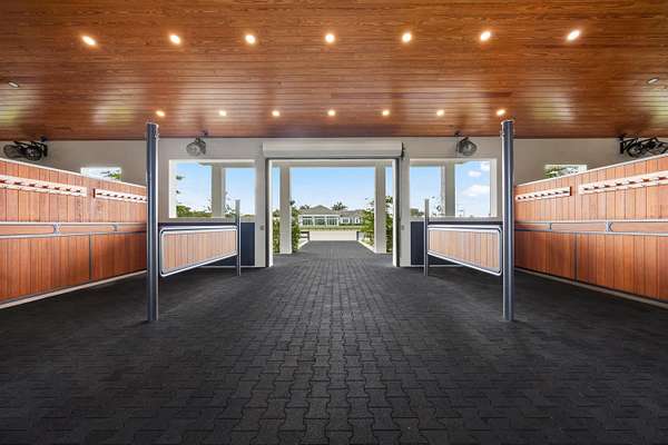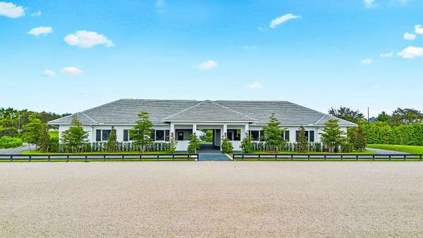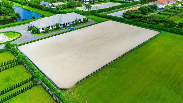 Located at 15359 Sunnyland Ln, Wellington, Florida, 33414, this exceptional new construction estate in the prestigious Palm Beach Point community is offered for $9,750,000. Spanning nearly six acres, the property provides an unparalleled blend of luxury, privacy, and equestrian excellence. The estate's expansive grounds, modern design, and remarkable amenities make it a must-see for discerning buyers seeking a unique lifestyle opportunity in a prime location. Prime Location and Equestrian Access Set on the east side of Palm Beach Point, the property enjoys direct access to the bridle trail, offering approximately fifteen minutes of riding distance to the International Equestrian Center. The estate encompasses 5.78 acres, with separate and private entrances for both the residence and the stable, ensuring privacy and convenience for homeowners and equestrian activities. Land and Outdoor Features The meticulously landscaped grounds feature two independent water systems and two independent septic systems. For equestrian pursuits, there is an impeccable 160' x 260' all-weather sand horse arena, a 110' x 260' "derby-like" grass field, five paddocks, a 70' round pen, and generous parking areas. The property features Bermuda sod, perimeter hedges, and mature trees such as Royal Palms, Shady Lady, Hong Kong Orchids, and Magnolias. Residence Highlights The 7,551 square foot house welcomes you with a tall double front door leading into an impressive living room with 15-foot ceilings and floor-to-ceiling glass doors. Engineered wood flooring, natural stone, and porcelain tiles create a cohesive and sophisticated aesthetic throughout the home. The spacious kitchen features a walk-in pantry, high-end appliances, and a 7.5 by 7.5-foot quartzite island, perfect for culinary enthusiasts. The master bedroom has 12-foot ceilings, double closets, and an en-suite bathroom. Each of the three extra bedrooms has 12-foot ceilings, en-suite baths, and walk-in closets. A flexible room provides the option to serve as a bedroom or office, with direct access to the living area. Additional amenities include a laundry room, a three-car garage, and a large gym overlooking the pool, grass field, and horse arena. A spacious 1,100-square-foot covered patio with a lap pool adds to outdoor living. The house is equipped for future enhancements, with installations in place for a potential sauna and outdoor kitchen. Equestrian Facilities The stable, measuring 8,266 square feet, is designed for ventilation and natural light, featuring tongue and groove wood ceilings. It includes twelve Rower & Rub stalls, each with dimensions of 12' x 14'. The stable features 14-foot-wide aisles, a dedicated tack room, feed room, laundry facilities, groom's bar, powder room, ample storage, four wash stalls, two grooming stalls, a riders' lounge, and a covered viewing patio. The stable features impact shutters, roll-up doors, and a fly spray system for protection and convenience.