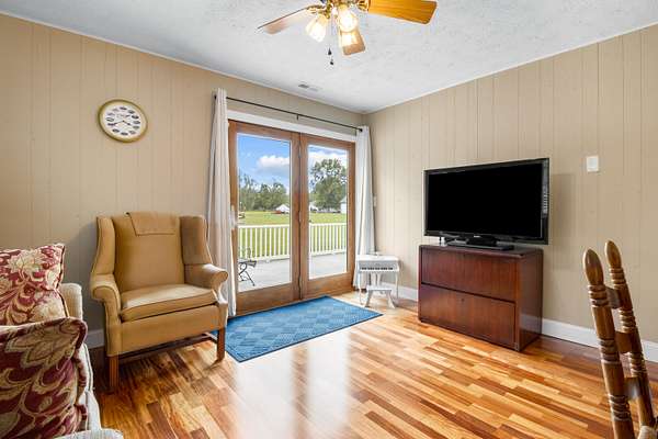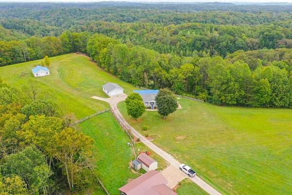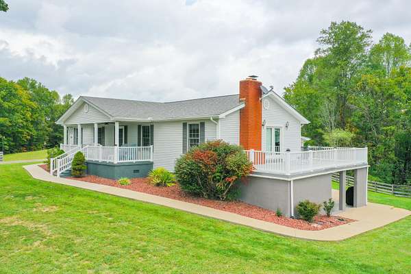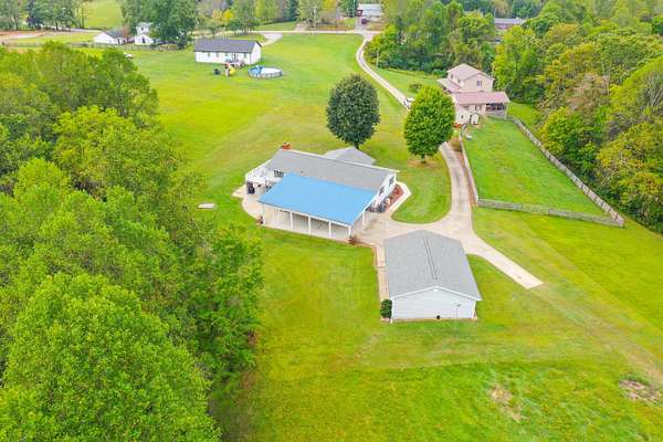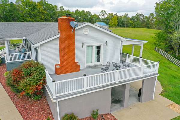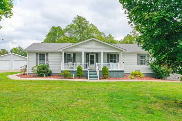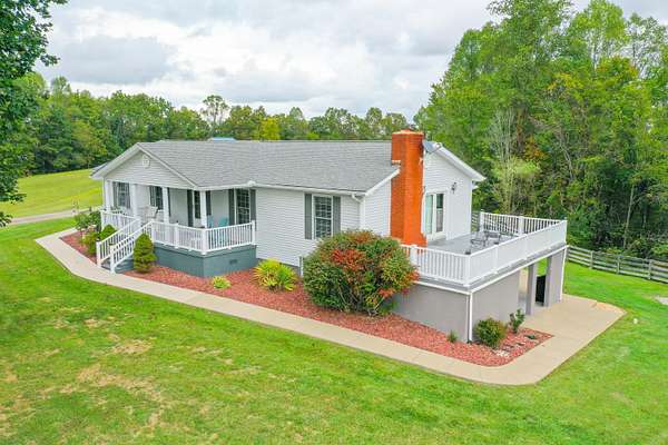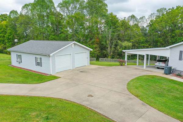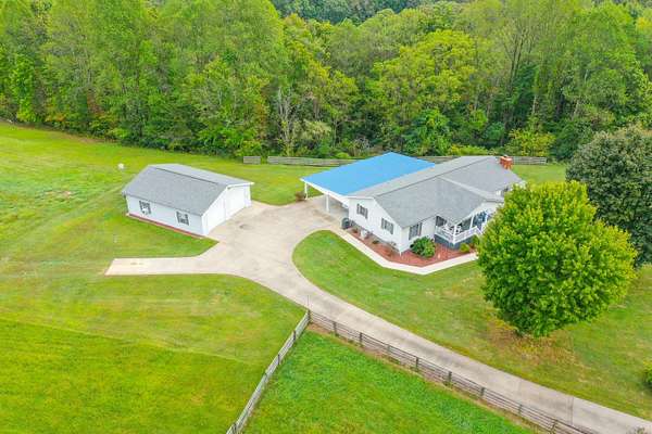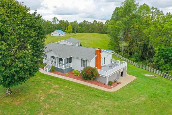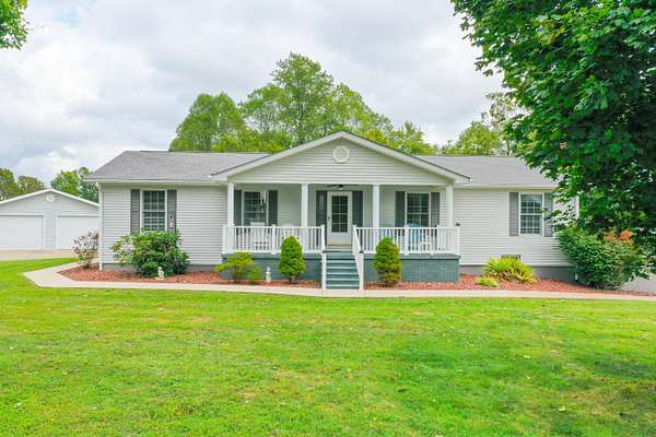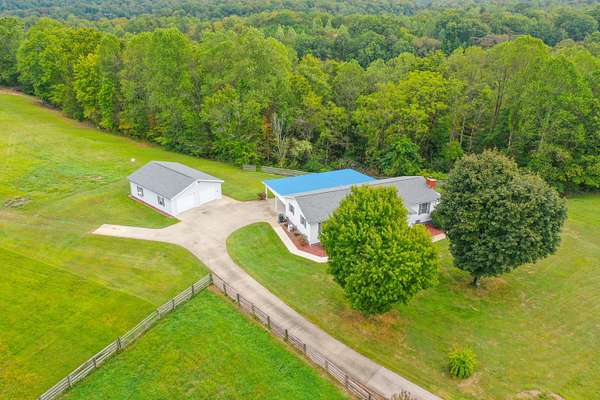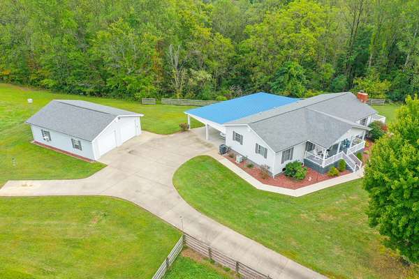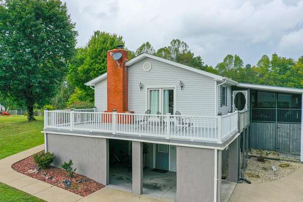 Welcome to your dream property! Situated on 7 beautiful acres, this spacious 4-bedroom, 3-bath home offers the perfect blend of comfort, functionality, and outdoor living. Inside, you'll find a welcoming living room and a cozy family room complete with a fireplace. The fully finished basement includes a second full kitchen and multiple finished rooms, providing endless possibilities for multi-generational living, guest space, or a home office setup. Enjoy outdoor living year-round with a charming covered front porch, a screened-in back porch, and a side patio-perfect for entertaining or relaxing in peace. Car enthusiasts and hobbyists will love the two large detached garages: one 28x36 with electric and a concrete floor, and a second 32x36 garage, also with a concrete floor-ideal for a workshop, storage, or a car collection. Whether you're looking to garden, raise animals, or simply enjoy open space, the 7 acres offer the freedom to do it all. Located just 2 minutes from the Wood Creek Boat Dock, you'll have easy access to fishing, swimming, and boating adventures. With kitchens on both levels, tons of flexible living space, and room to roam, this home truly offers endless possibilities. Don't miss out-schedule your private showing today!
