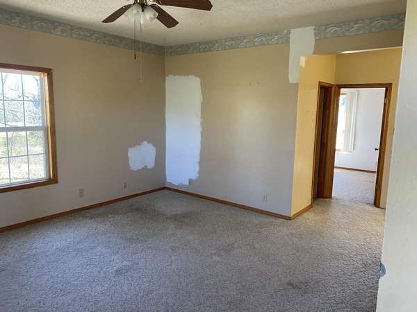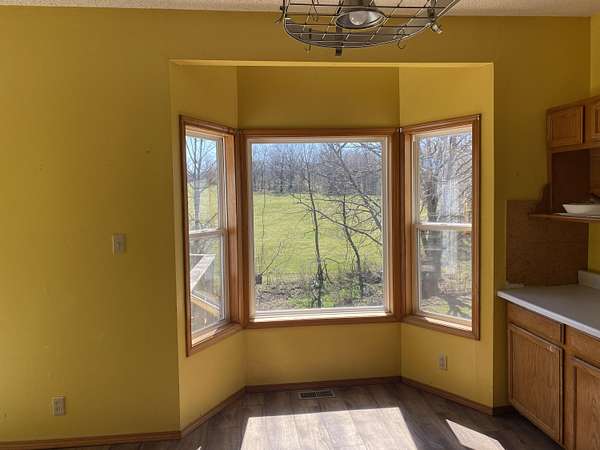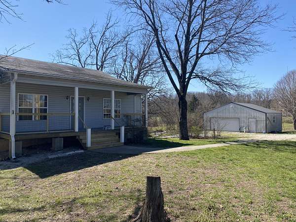 If you're looking for a place in the country that also has easy access to 60 Hwy, take a look at this! This home features a covered front porch and offers 2,000 sq ft of living space, with 3 bedrooms (one additional nonconforming room) and 3 full bathrooms. This beautiful home needs some updating and improvements, but several have already been done for you, such as completely new plumbing for the whole home, and a brand new central heating and air unit put in last year. The master bedroom is conveniently located on the main floor. The kitchen has plenty of cabinets and a pantry, while the dining room opens up to an outdoor porch. The basement serves as the third bedroom and utility area, complete with a bathroom. Additionally, there is an attached 2-car garage. The 3 acres are laid out perfectly, with a separate fenced-in spot for animals, a large yard, and a wooded lot complete with a bridge over a wet weather creek. There's also a 30x24 shop and no close neighbors - just cows! Must see to really appreciate the beauty and potential of this home. Come see your future home today!!