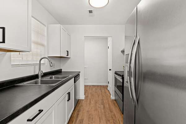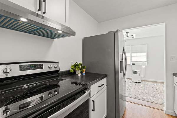 - Dishwasher, Range, Refrigerator, Vented Exhaust Fan