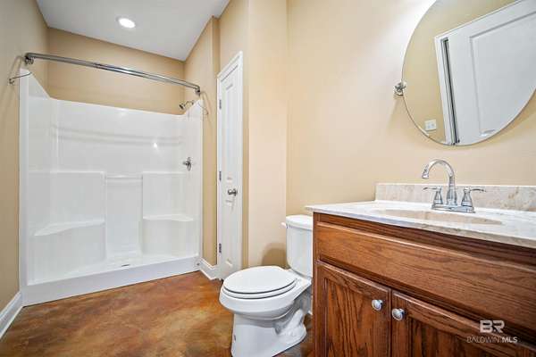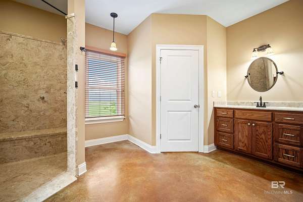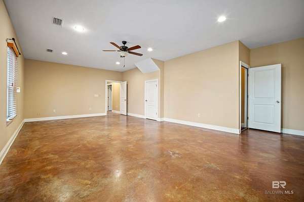 Welcome home! This beautiful home offers 4 bedrooms, 3 baths with a bonus room on the upper level. The kitchen has two pantries, plenty of cabinets and a large center island. Tall, trey ceilings in the living room and primary bedroom. Beautiful sunroom sits just off the living room. Concrete stained flooring throughout the home on main floor and carpeting in upstairs bonus room, walk-in closets and two large utility rooms. The home has an outside shower, hook up for a gas grill (propane) and hook up for a generator. Outside storage building (15X32) conveys. Attached, two car carport. All situated on 4.4 acres offering country living yet conveniently located just outside the city limits of Bay Minette. Buyer to verify all information during due diligence.
