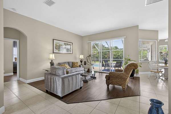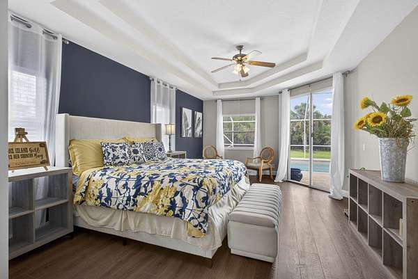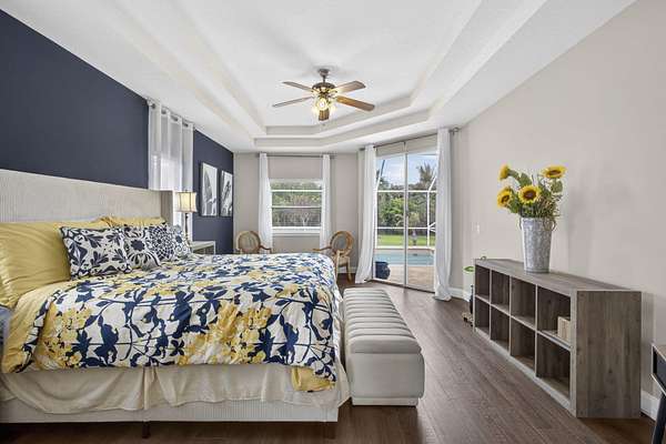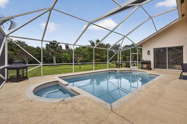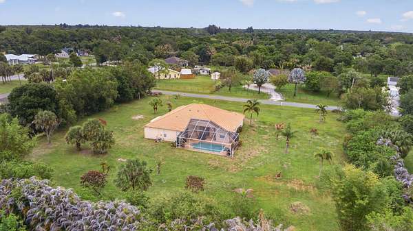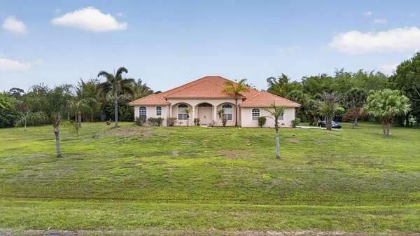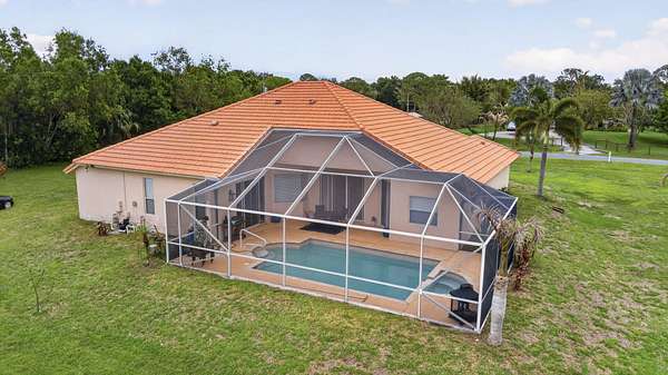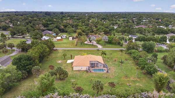 Location is the key to this home .. Come see this light, open, airy Jupiter Farms pool home that is located on 1.5 acres...country living meets modern convenience. This 3/2 with a 4th bedroom/den, features a completely renovated master bedroom with a stand alone bath, floor to ceiling tile shower, his and her sink brand new sinks with granite countertops; all bedrooms, hallway, dining, and formal living rooms have brand new wood laminate flooring; 2024 A/C Unit , Water treatment system and interior painted. Homeowner decided to discontinue the repairs due to personal reasons, so buyer can still make it their own. Seller is willing to install new metal roof with the right offer after loan commitment is received. Seller is motivated so call me to make your offer.